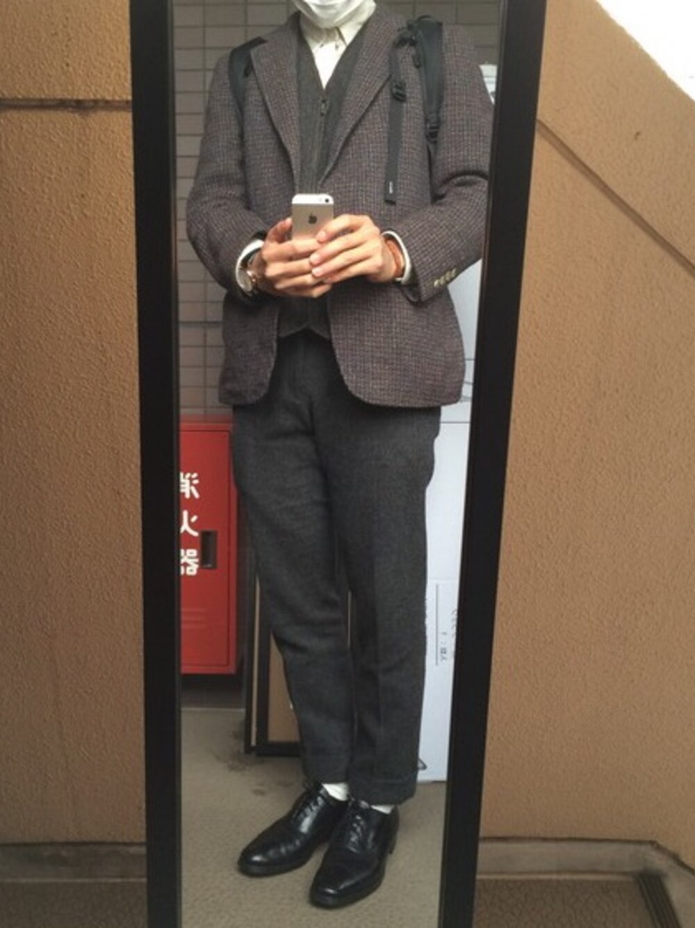 church'sこの前はいたら靴擦れしたから今日もはいてなじませる。 この前買ったベスト、50'sのWOOLRICHらしい。