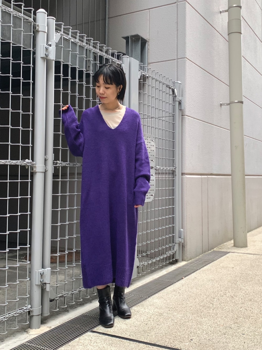前の投稿のアウターなしバージョン◎ ざっくりVネックがかわいいニットワンピ🙆🏻 instagram @joooyayu
