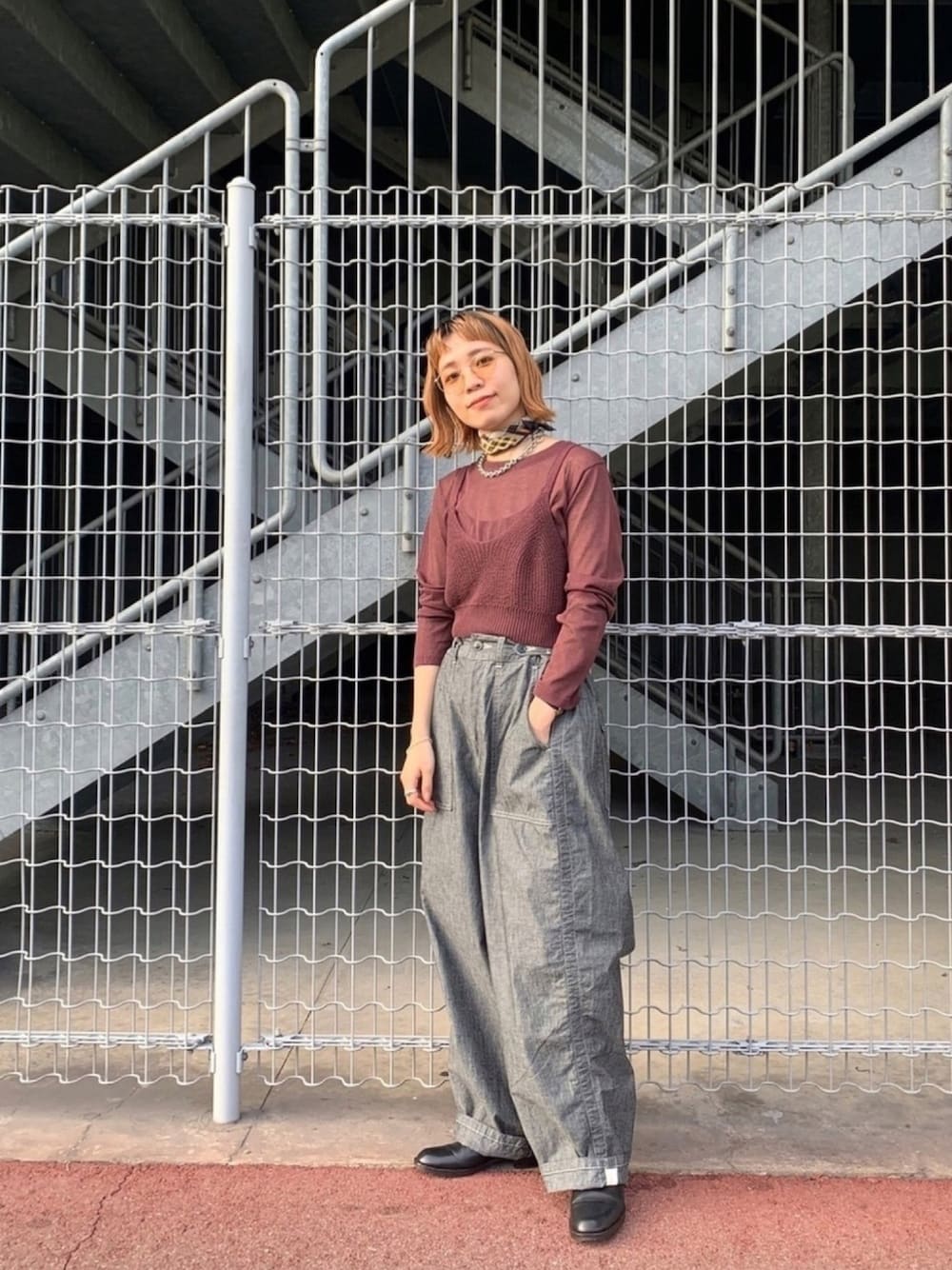 シアー素材で女性らしさのあるアンサンブルプルオーバーを、メンズ感たっぷりのワイドパンツで外したスタイリング。 落ち着いたカラーの合わせなので、首元にスカーフとチェーンネックレスをアクセントに⛓ 着用アイテム *ビスチェアンサンブルプルオーバー サイズ感: タイト過ぎず、程よいゆとりが嬉しい。Tシャツの上にビスチェのみ重ねるのもおすすめ。 着心地: レーヨンとナイロンの素材でサラッと夏も快適に着やすいです。 *【SAKULA】JAMES PT サイズ感: かなりリラックス感のあるサイズ感。ウエストサイズも大きめですが、ウエスト部分のボタンで調整が可能です。 153㎝だと丈は長めですが、ロールアップしても可愛いデザイン。 着心地: ハリのあるシャンブレー素材でしっかり立体感が出ます。ガシッと安心感のある履き心地。