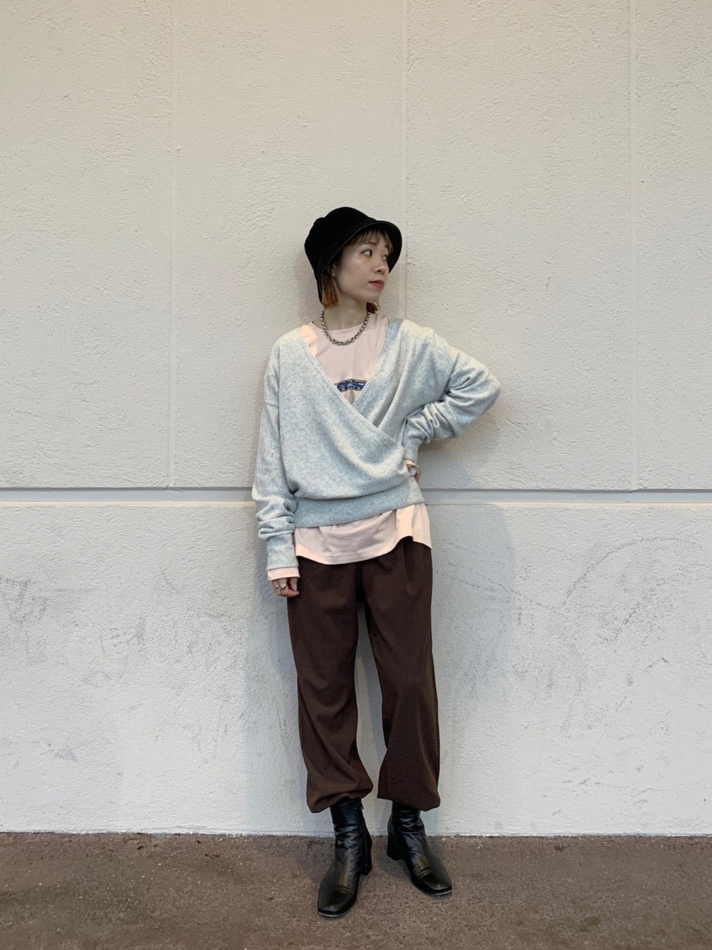 ピンク、ブラウン、グレーのカラー合わせがお気に入り👌🏻 カシュクールニットからちらっと見えるメンズのプリントロンTとメトロハットで私の中では珍しい、少しストリートなスタイリングに。 着用アイテム *カシュクールニット サイズ感: 着丈は長すぎず、程よくゆとりのあるシルエット。 着心地: ふわっと柔らかく着心地よし。薄手ですが暖かいです。 *ダブルタックジョグパンツ サイズ感: 153㎝ の私が着用すると、裾のリブ部分にたぷっとたまる感じが可愛いので長さは問題なし◎ 着心地: リラックス感があり、楽な履き心地。 *【CHRYSTIE NYC】ロンT サイズ感: メンズのMサイズを着用。女性が着てもかわいいゆるさ。 着心地: 柔らかいコットン素材で着心地よし。