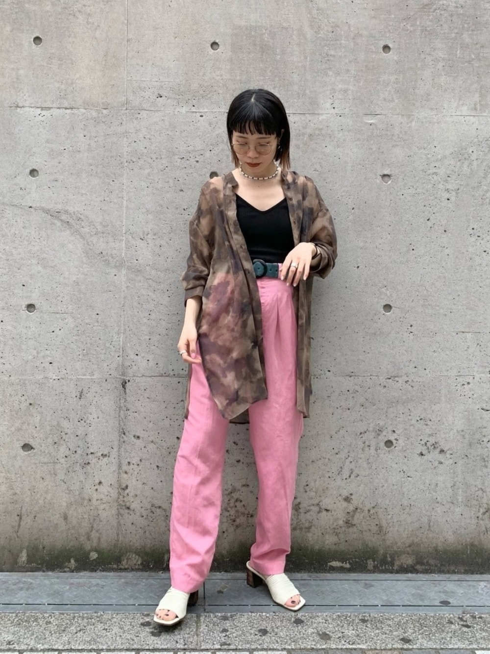 ピンクのパンツは幼く見えないよう、大人見えするブラウンベースのぼかし柄シャツで合わせました。 インナーはブラックのキャミで、ヘンシーにしたのもポイント。 着用アイテム *ぼかし柄シアーバンドカラーシャツ ・サイズ感: ゆったり着丈はお尻がしっかり隠れるぐらい長めですが、シアー素材なので小柄さんでも抜け感が出てバランスとりやすいですよ。 ・着心地: かなり軽く、長袖ですが、さらっと着心地の良い素材ですし夏も涼しい。 *リネンセミワイドカラーパンツ ・サイズ感: Sサイズを着用。ウエストは少し大きめ、丈感も長めです。私はベルトでぎゅっと絞ってしっかりウエスト位置上げてます。 ・着心地: リネンの入った素材で、夏も快適に履けます。キレイに見えて、動きやすい楽なシルエットも◎ *バックオープンカップ付キャミ ・サイズ感: コンパクトめです。私にはちょうど良い。 ・着心地: ぴったりホールド感があり、安心感のある着心地。 *虎目石パールネックレス 長の調整できるデザイン。最短にするとチョーカーのようにもなります。意外とカジュアルにもキレイめにも馴染む万能ネックレス。