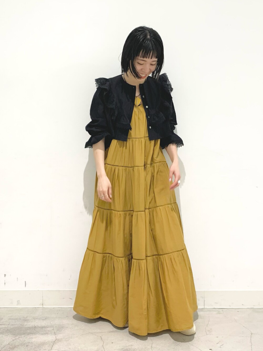 ロングでボリューミーなティアードワンピに、結構短めなレースシャツを羽織で。 バランス良しですね◎かわいい。 シャツのお袖はぎゅっと上げるのがポイント。 着用アイテム *80ボイルティアードノースリワンピース たっぷりと生地が使われていてボリューム感が可愛いデザイン。胸周りや袖ぐりもゆったりで楽に着れますが、フレンチスリーブで首周りが広いのでスッキリ女性らしさも出るデザイン。 着丈は長め。153㎝の和でヒールを履けば大丈夫です。 柔らかく肌触りの良いこの素材感のティアードデザインが好みです◎ *ピンタックレースショートブラウス 身幅は広めでロンTなどでも楽々中に着れます。着丈が短いので、キャミワンピに羽織ったり、長めのインナーとレイヤードも可愛い。 柔らかいコットン素材。 袖口はゴムが入っていて、締め付けは強くなく、でも緩すぎないのがいいです。