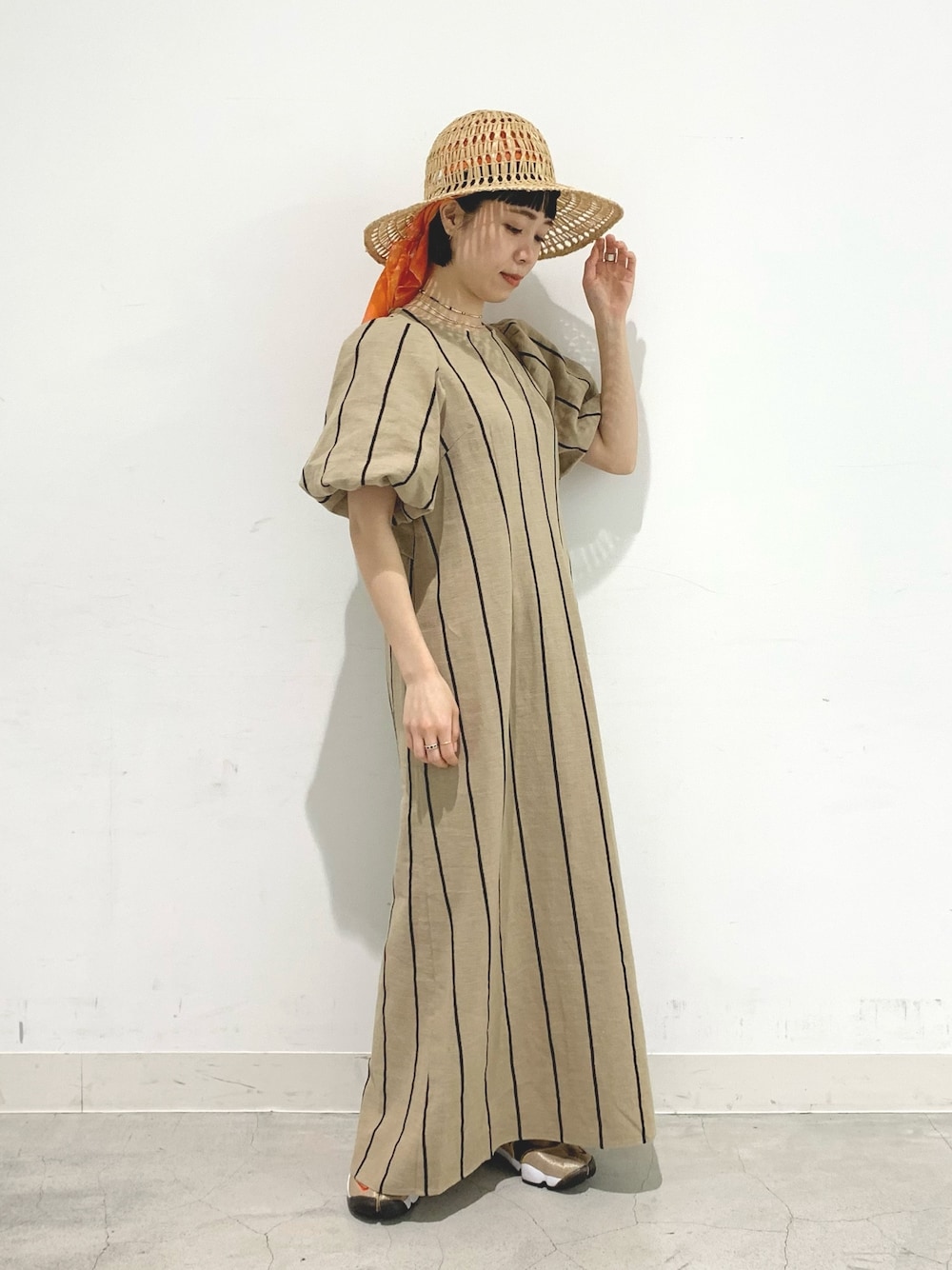 バルーン袖で可愛らしいデザインのワンピースはスニーカー合わせでカジュアルに外しました。 麦わら帽子にオレンジのスカーフを仕込んでスタイリングのポイントに。 着用アイテム *ストライプバッグオープンワンピース スッキリとキレイに着れるシルエットですが、ボディラインは響きにくい。 丈感は、153㎝の私でヒールなしでも着用できるぐらい。裾幅が広すぎないことで、長さがあっても裾を踏む心配が少ないです。 1枚で透けないしっかりした素材感。