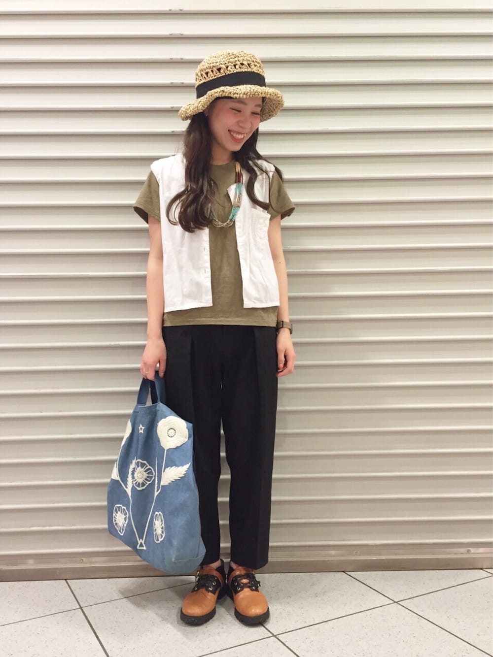 Tシャツの上に着たベスト的なのは 古着の前ボタンブラウス的なの👼笑 後ろがメッシュになっていて可愛い💕 可愛いポイント全然見えてない。笑