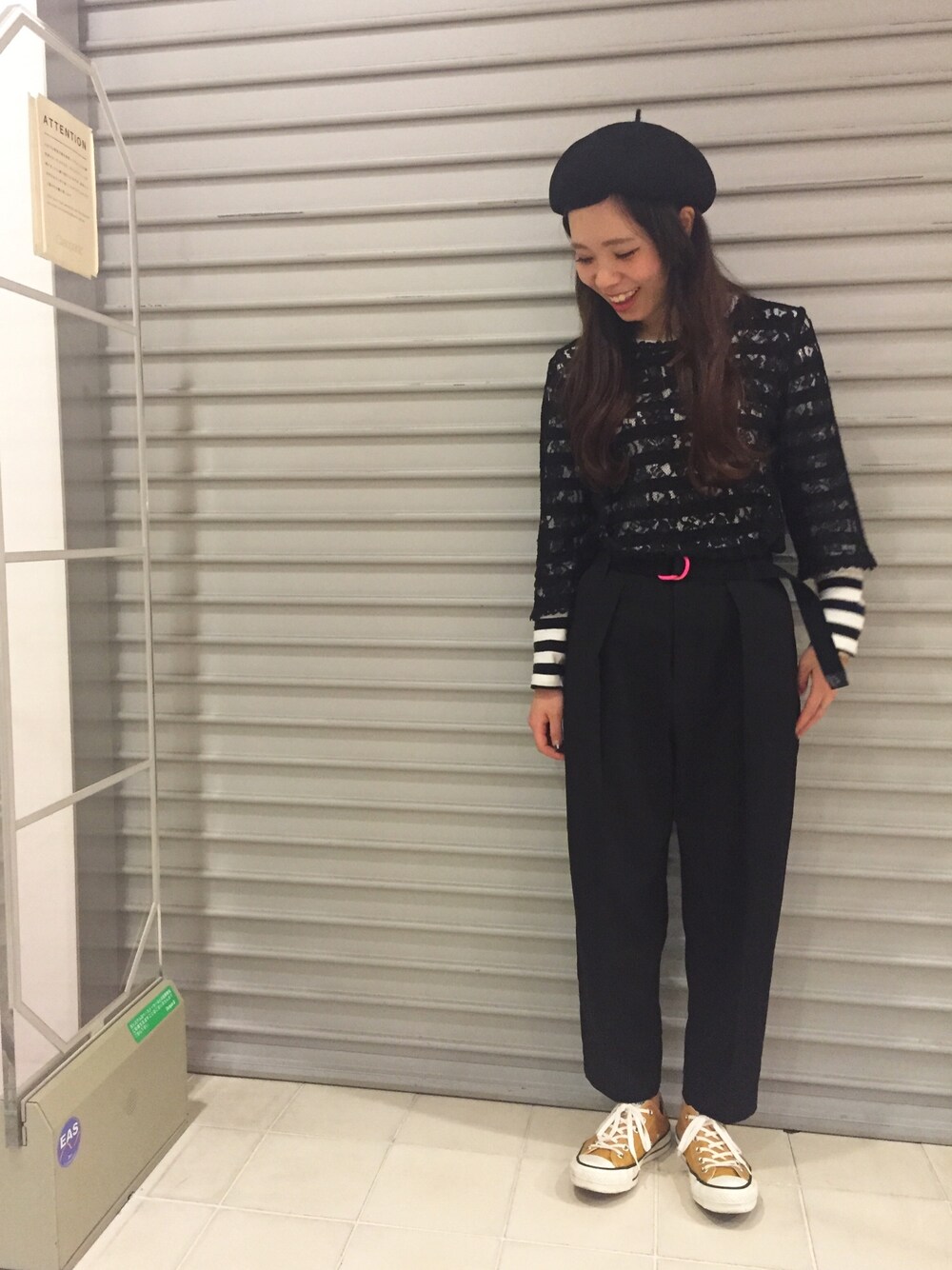 ブラックの日でした🙆 スニーカーだけカラーをプラスしてポイントに💛結局はカジュアルにまとまった👌