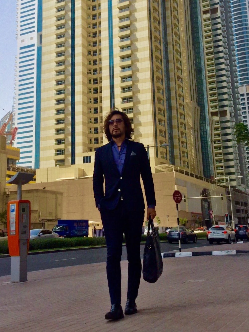 I’m on my way to work💼💼🏢🏢 住んでるビルをバックに出勤コーデ( ❝̆ ·̫̮ ❝̆ )✧ 最近40℃台前半になってきて涼しくなってきたよー‹‹\(´ω` )/›› セットアップはスウェット生地で動きやすいやつにシャツを同色系にしてルーミーのアドバイスもあったから胸元ガッツリ開けてみた(*´艸`*) 日本なら許されないよね、ビシネススタイル ぺろーん
