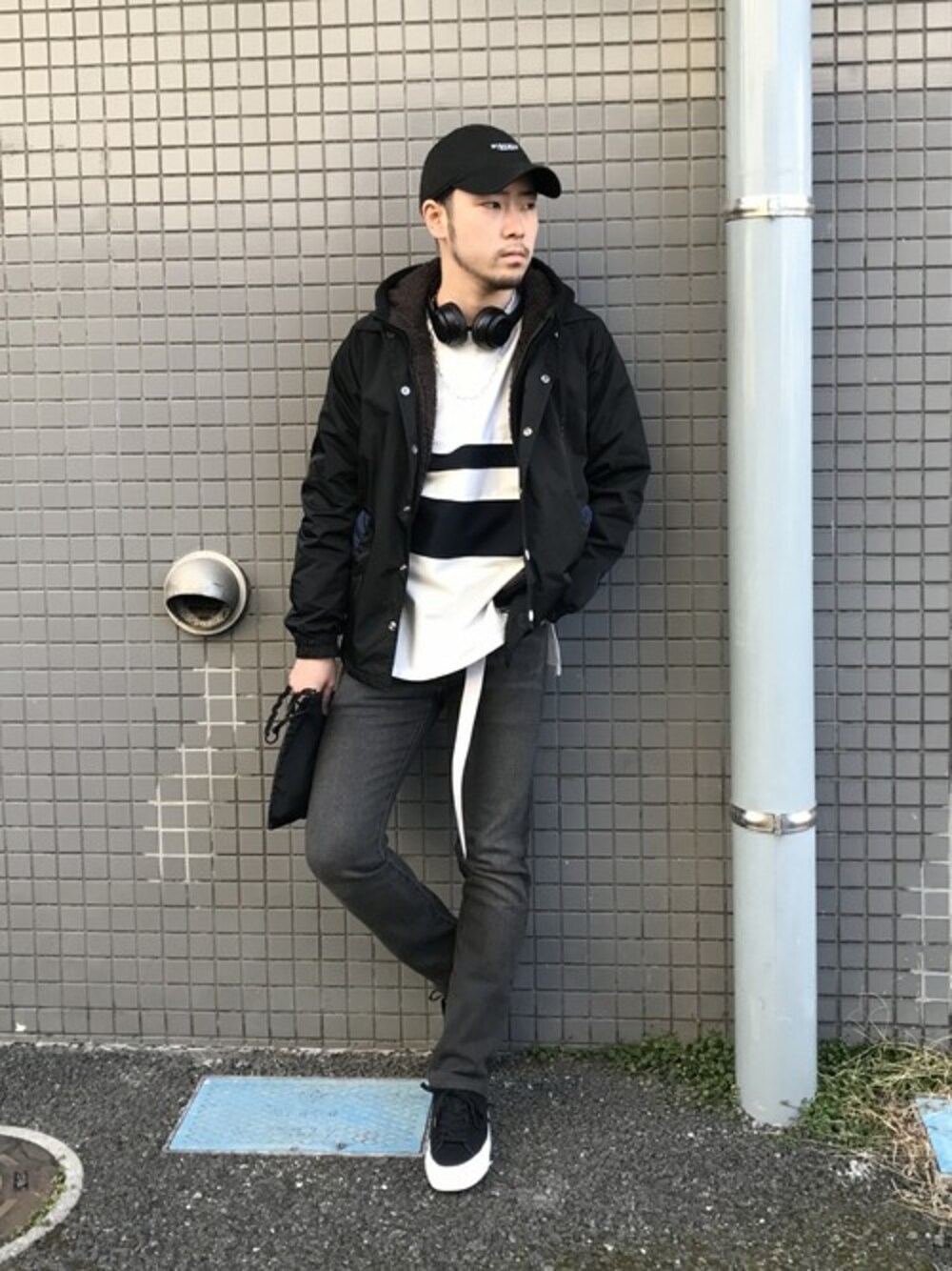 スキニーデニムスタイル 505cを使い上半身のゆるさと下半身の締めでバランスをとり17SSシーズンのトレンドでもあるスポーツMIXなコーデに仕上げました。