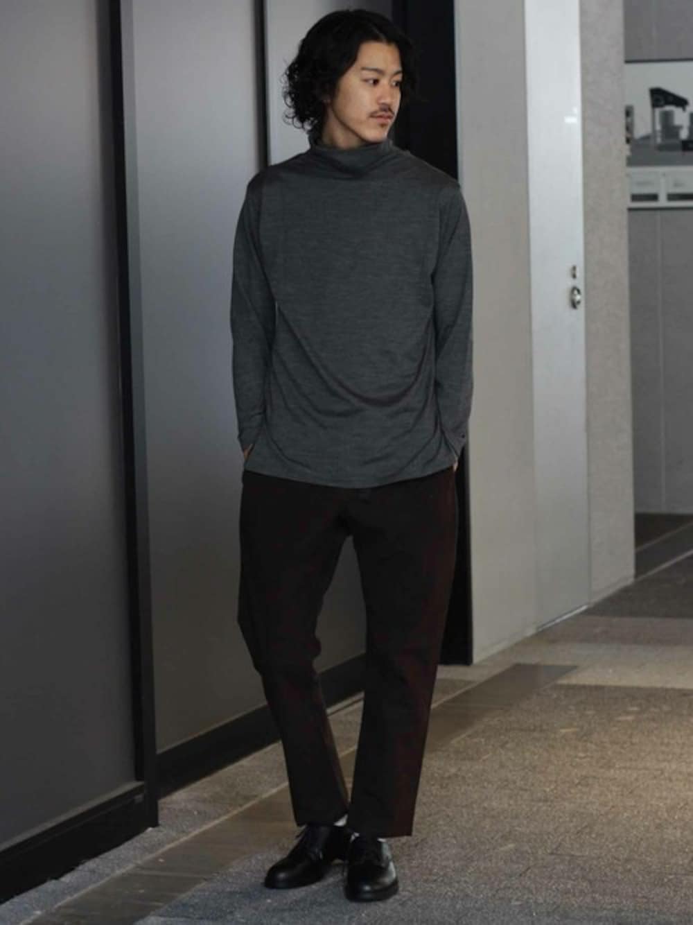 大人の雰囲気に仕上がるスタイリングで! スッキリとしたタートルネックに丈感のバランスを整えて演出してみました。