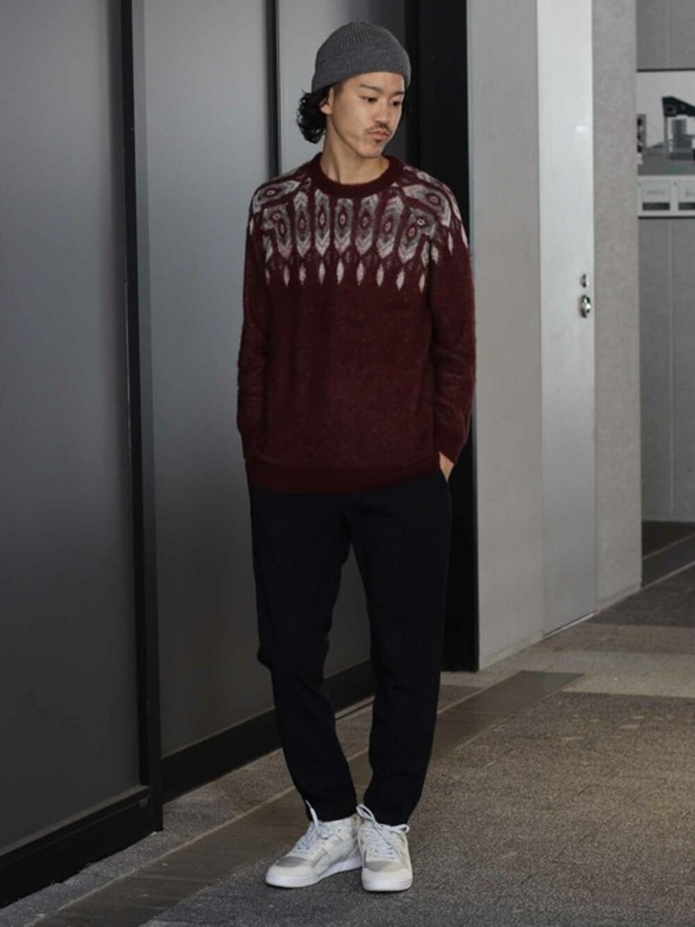 冬に最適なノルディック柄でシンプルにスタイリング。