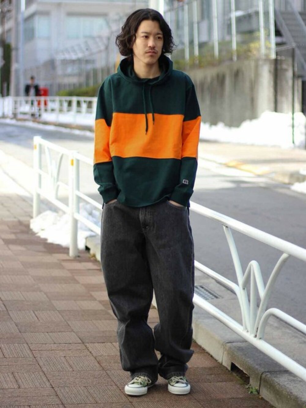 YUKIのパーカー「RUSSELL×JS RUGGER HOODIE/ラガーパーカー 別注#」を使ったコーディネート