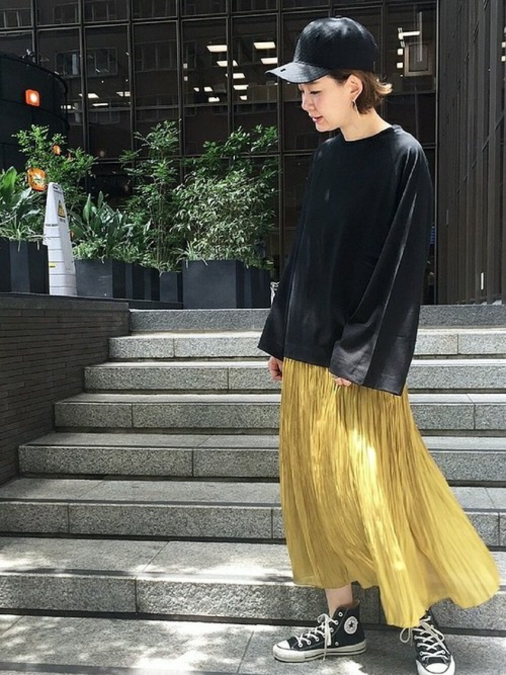 この秋冬も引き続き注目のプリーツスカート。 素材はポリエステル100%使用。程よく光沢感もあるため、カットソー合わせでもシックな印象に仕上がります。