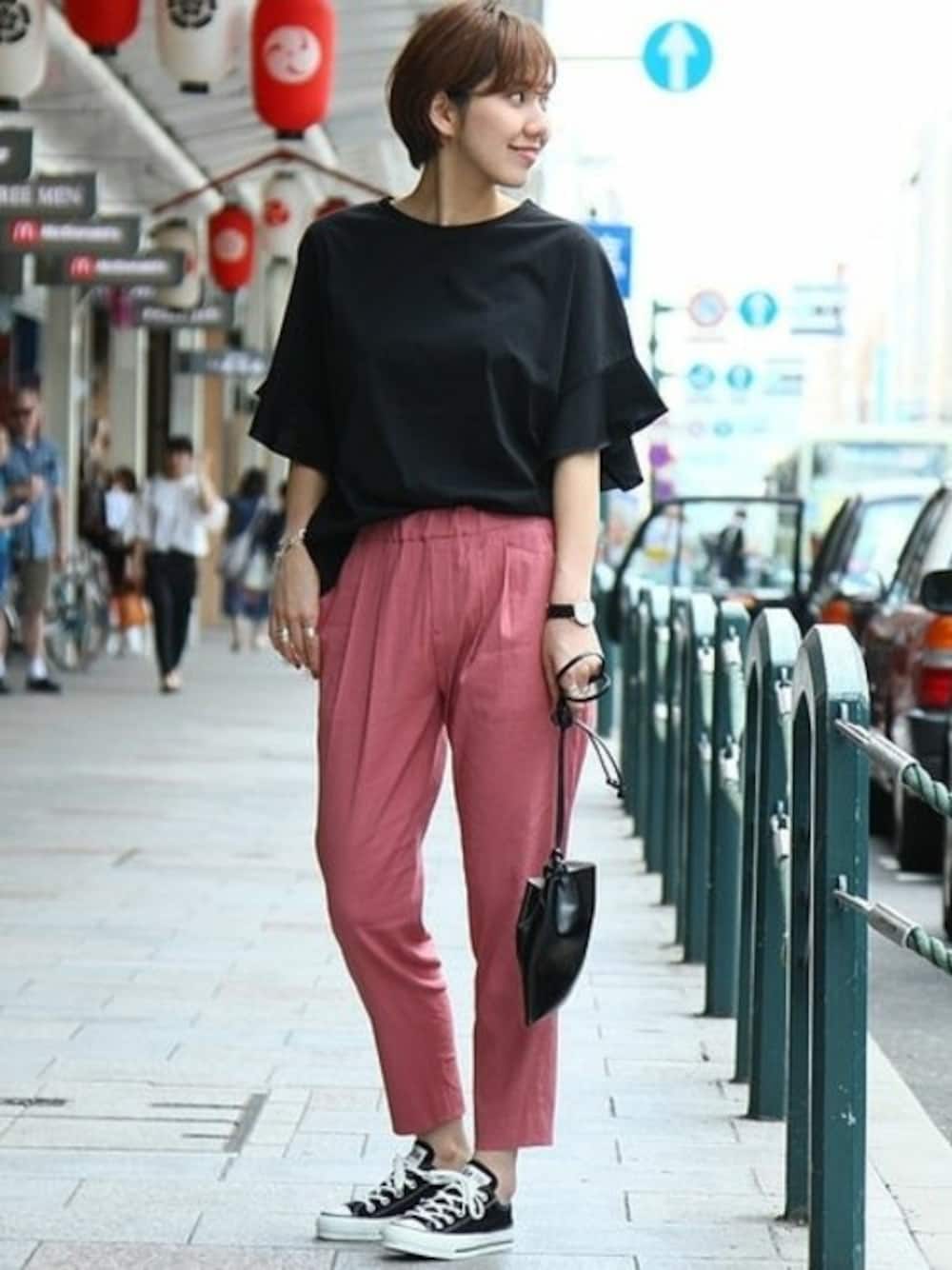 毎年人気のLI/VISテーパードパンツから、新色のピンクが登場!ブラックとの合わせると締まった印象に◎コーディネートのポイントになります。