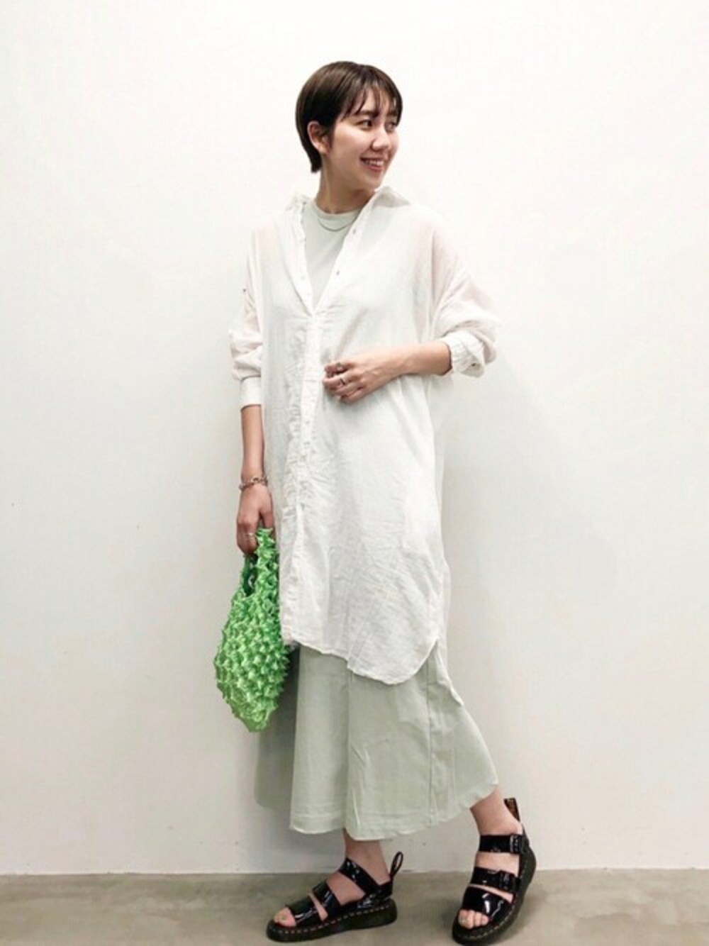 【ARMEN/アーメン】UTILTY REGULAR COLLAR LONG SHIRTS 一枚着にも、羽織りアイテムとしても大活躍間違いなしのロングシャツ。透け感があり、夏場でも涼しく着ていただけます。 サイズ感:ゆったりしていて、長めの丈感が体型カバーにも◎ 素材感:コットン100%で柔らかく、肌触りが良いです。 着心地:程よくリラックス感があり、シワが気になりにくいのも嬉しいポイントです。