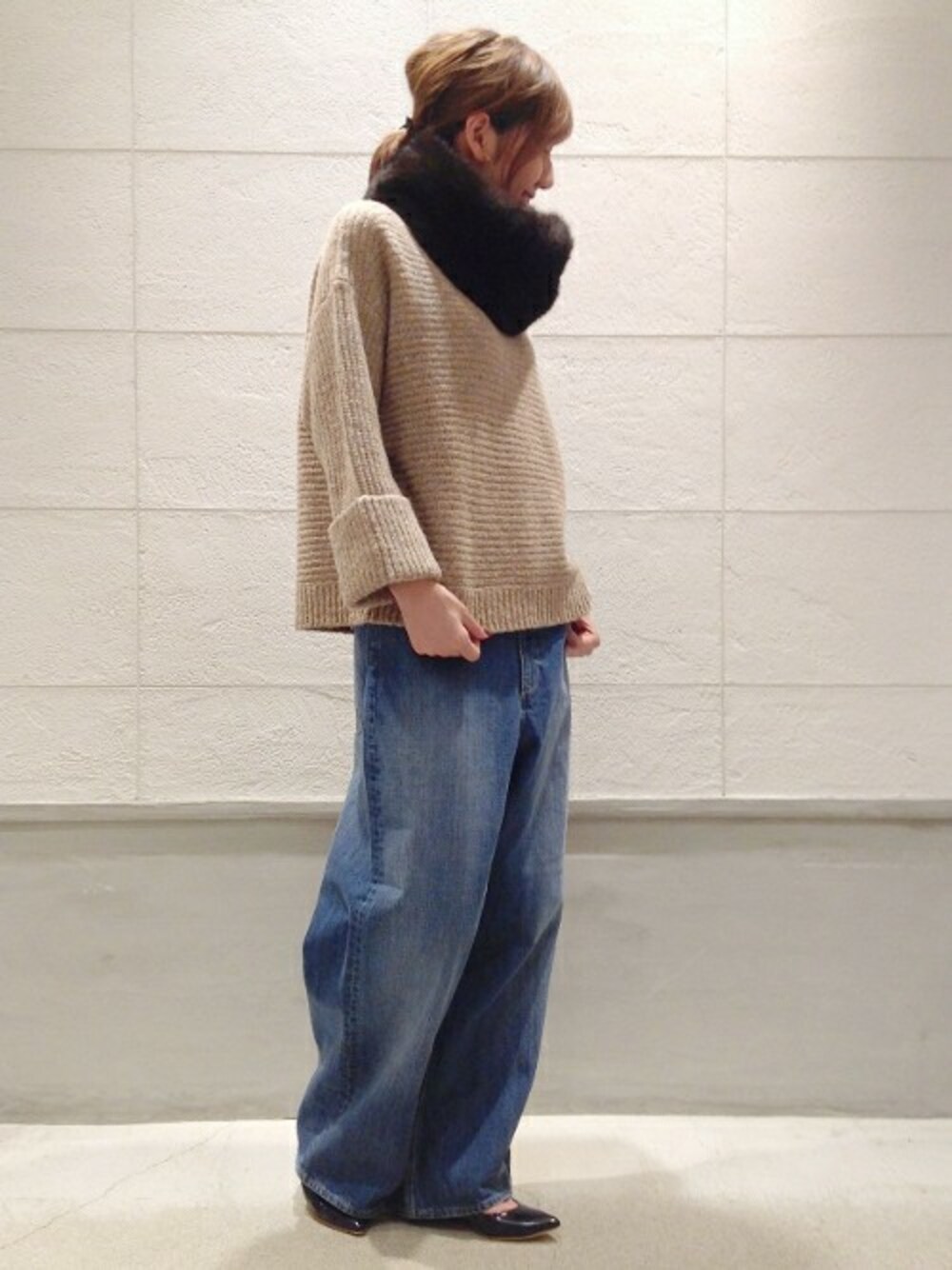 今年らしいボリュームニット×ワイドデニムを絶妙なバランスで仕上げたスタイル。