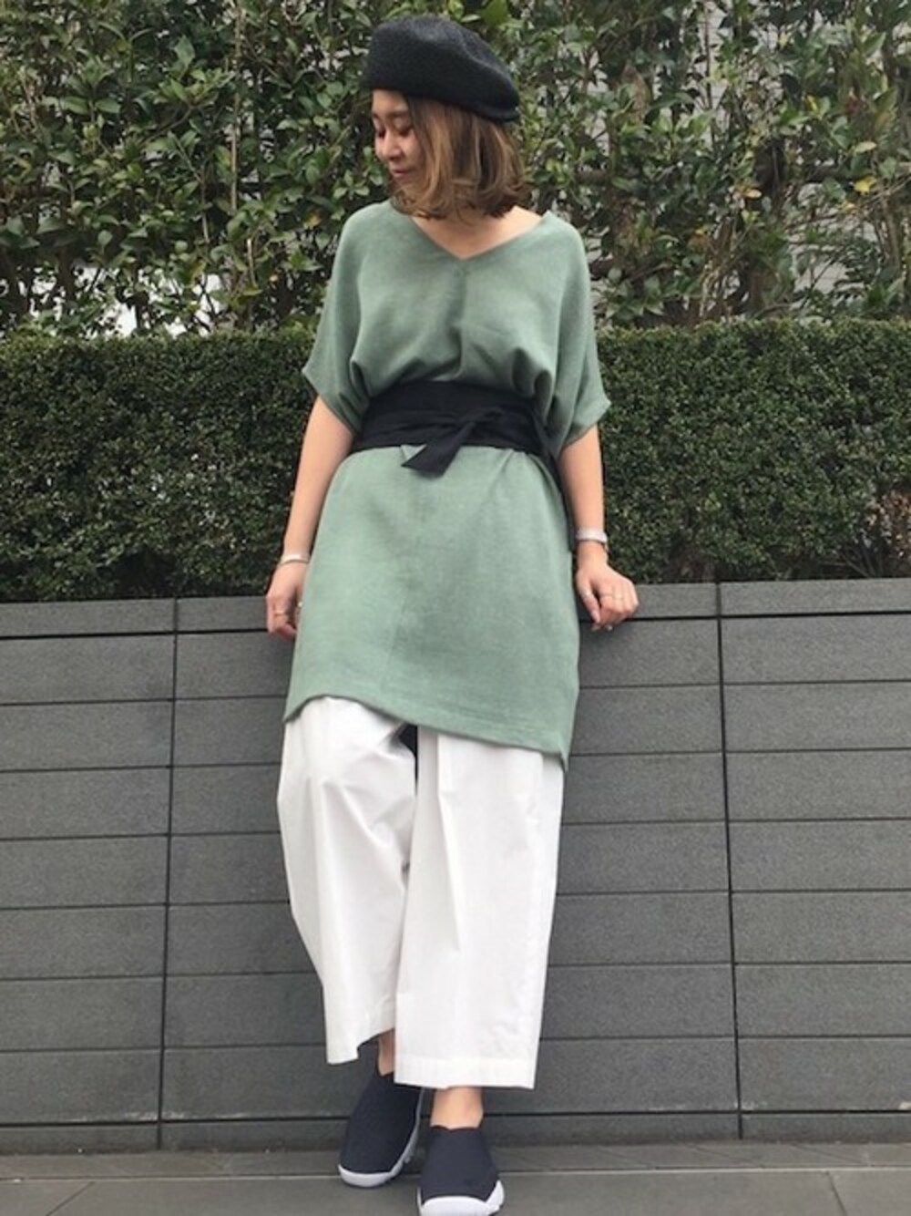 ◆リネンワンピースコーデ ワイドパンツを穿いて、サッシュベルトを巻くと今年らしいスタイリングに!