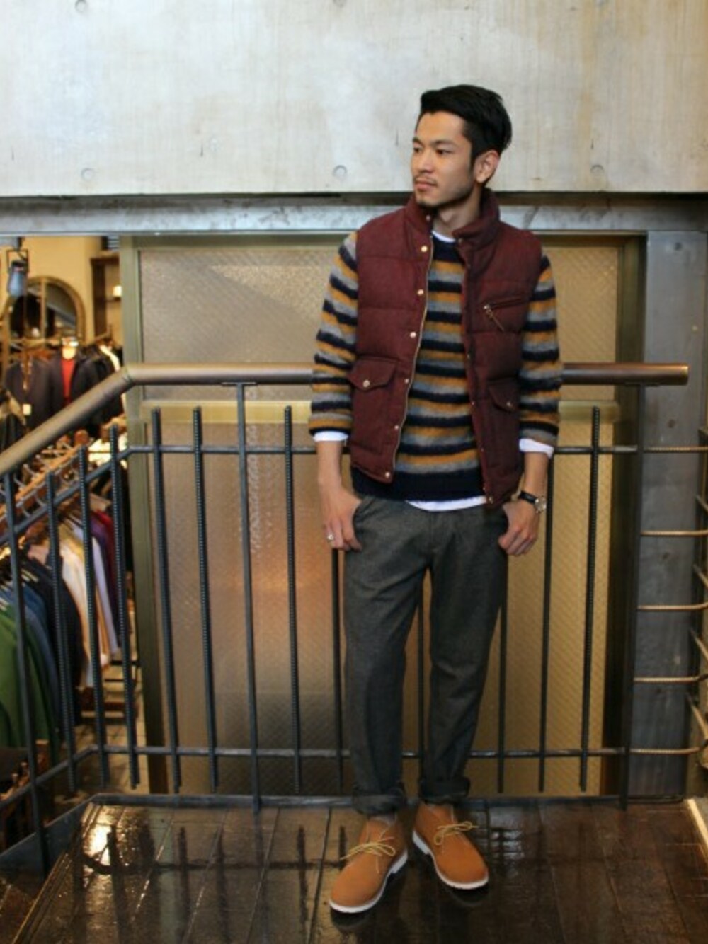 JOURNAL STANDARD 表参道 スタッフのダウンベスト「★ブロークンツイードダウンベスト #」を使ったコーディネート