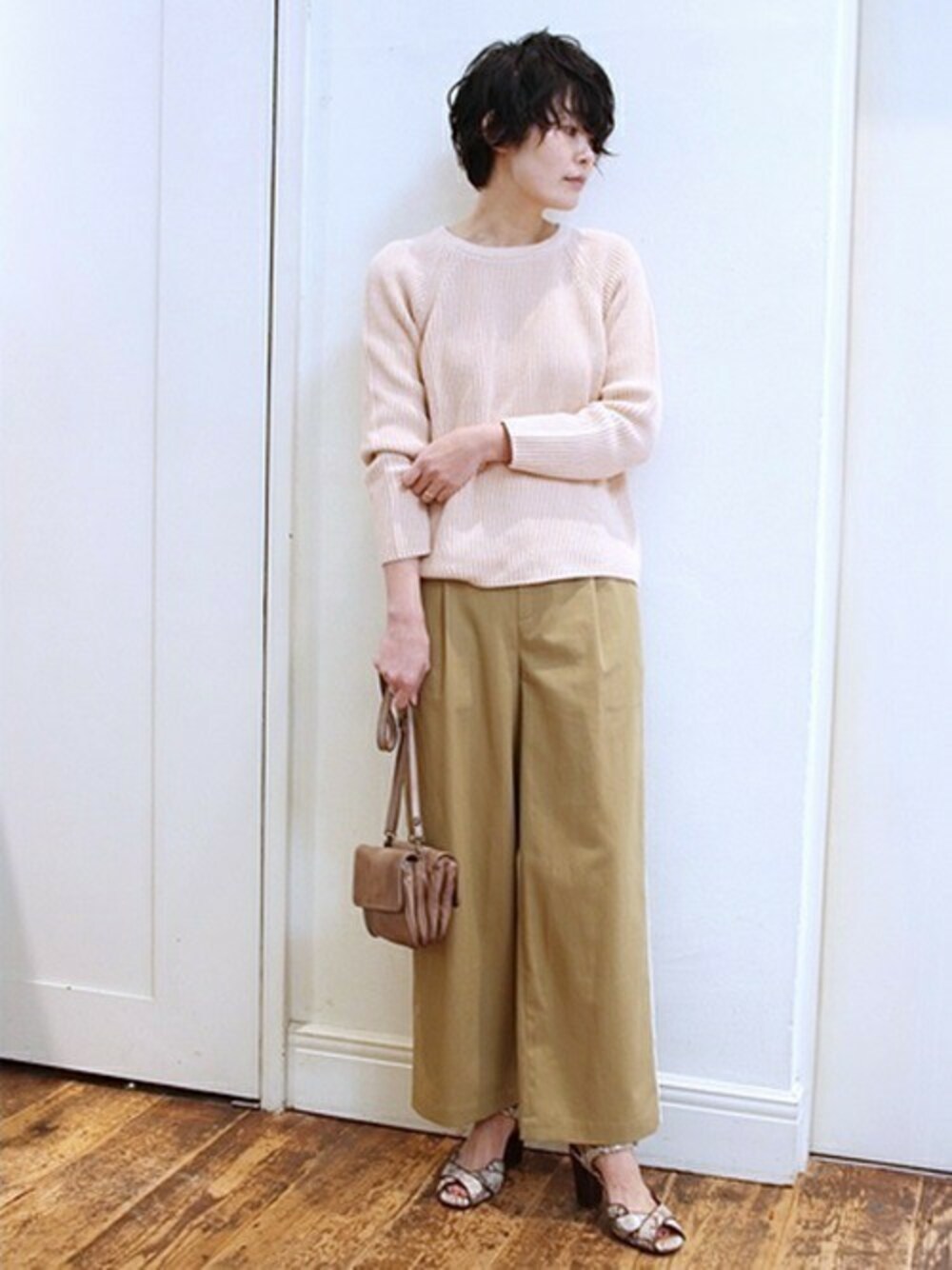 Tamuraのニット/セーター「コットンアゼ ガラキリカエプルオーバー#」を使ったコーディネート