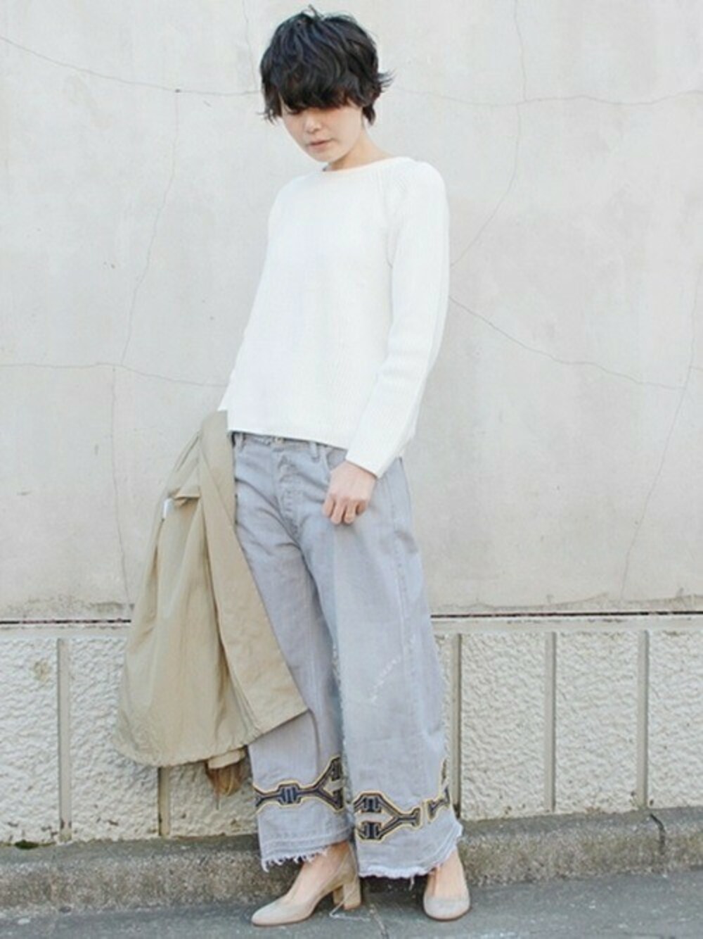 Tamuraのニット/セーター「コットンアゼ ガラキリカエプルオーバー#」を使ったコーディネート