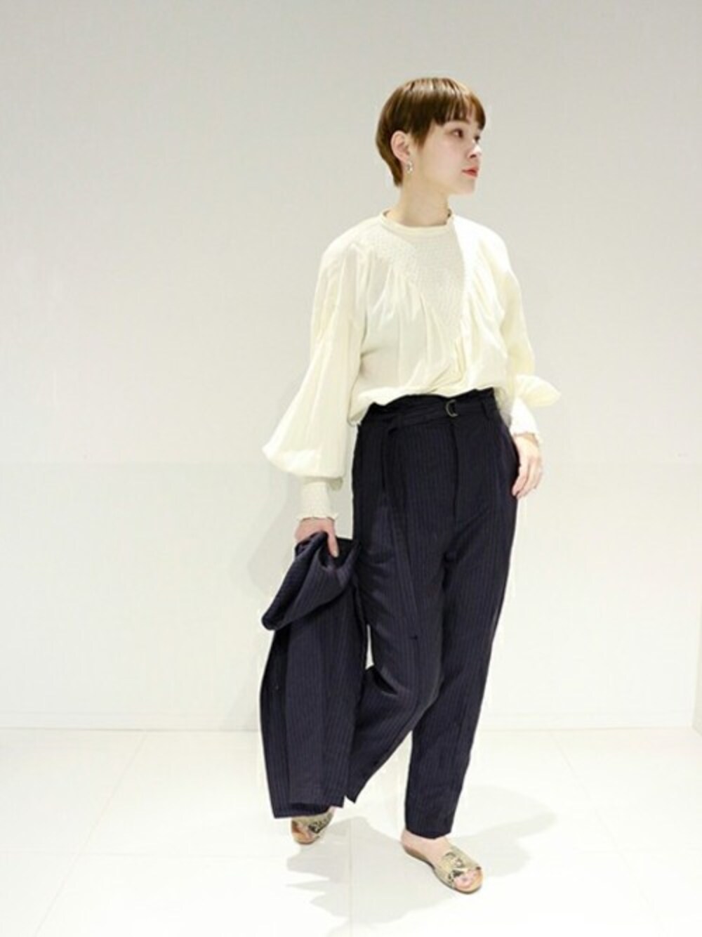 「自宅で洗える」が定番! おしゃれな人が毎日使う優秀 5選 これからの“新定番”ボリューミーな袖がアクセントのブラウス。 ウォッシャブルかつ上品な見た目のブラウスは、着るだけで差のつく通勤スタイルに。 胸元と袖のシャーリングがヴインテージライクな雰囲気に仕上がる一枚。 ご自宅で気軽にケアができるところも嬉しいポイント。 ◆合わせのセットアップ ・《予約》《WEB限定》JS+eレーヨン麻ジャケット◆(品番:20010400902010) ・《予約》《WEB限定》JS+eレーヨン麻パンツ◆(品番:20030400908010)