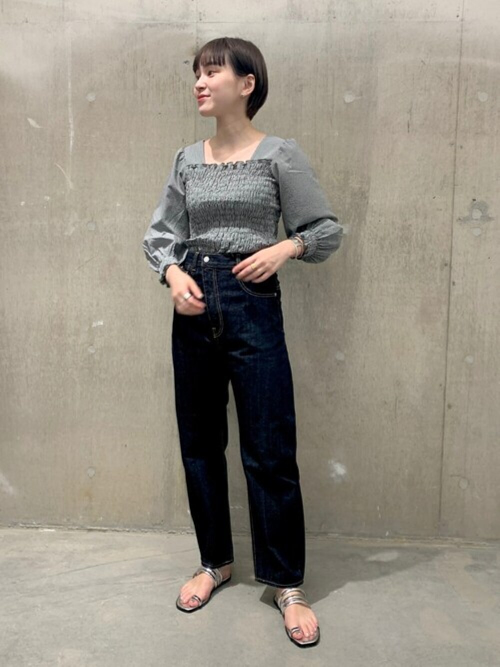 【web限定】JS+e サッカーシャーリングブラウス 女性らしいデザインのブラウス。甘くなり過ぎないよう、デニムで合わせるのもおすすめです◎ サイズ感:適度にフィット感があります。素材感:サッカー素材なのでさらっとして軽い素材感です。着心地:袖のパフのお陰でお腹周りがすっきりと見えます。 Instagram :@__orion_