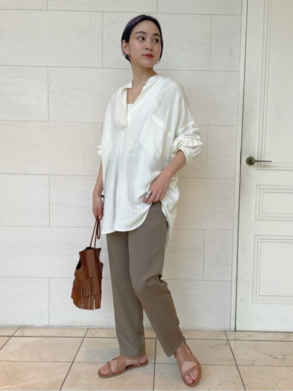スタンドプルオーバーシャツ 夏まで使える麻素材のシャツです。 カジュアルな素材ですがレーヨン混なので 動くたびに揺れるドレープ感が美しいです^ ^ 締め付けもなくリラックスして着用できるのも嬉しいポイントです! サイズ感 かなりゆったりとしてリラックス感があります。 ヒップは完全に隠れてボディラインを拾いません。 素材感 柔らかく、落ち感があります。 リネンですがチクチク感はなく、 程良い光沢感があり上品です。 着心地 スッキリ目のボトムと合わせて頂くのがおすすめです。 ★TOYAMA Instagram→@__orion_ ★広島店Instagram→@js.hiroshima