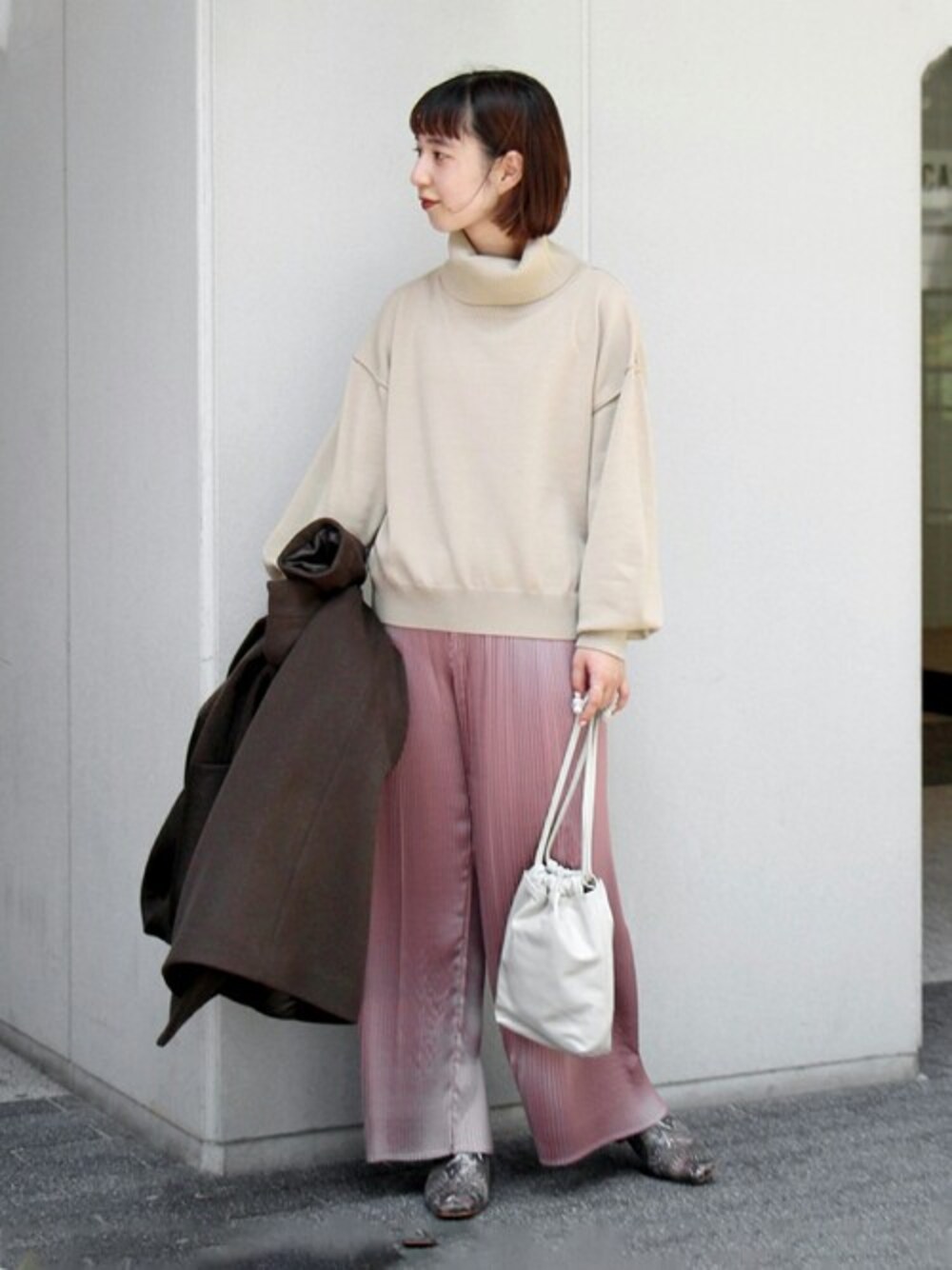 ウールポリエステル天竺ショートプルオーバー 今期イチオシのショート丈のプルオーバー。 ハイウエストのボトムに合わせるだけで一気に新鮮なバランスに! カットソーのインナーを合わせたりして、レイヤードスタイルも◎ 接ぎ目を外にした、アウトリンキングのディテールがアクセントになり程よいラフ感があります。 またハイネックがきれいに折り返るようにスリットを入れたりし、こだわってデザインしています。 すっきりとしたきれいめな見た目の編地はウール混ですがドライでしゃっきりとした手触り。 ご自宅でイージーケアできるのでデイリーにお使い頂けます。 ◆同シリーズでこちらもございます。 ・ウールポリエステル天竺ショートカーディガン(品番:20080400902030) サイズ感:コンパクトな丈感ですが、身幅や袖幅にはゆとりがあります。 素材感:ドライタッチな肌触りです。 着心地:シンプルなデザインなのでスタイリングしやすいです。