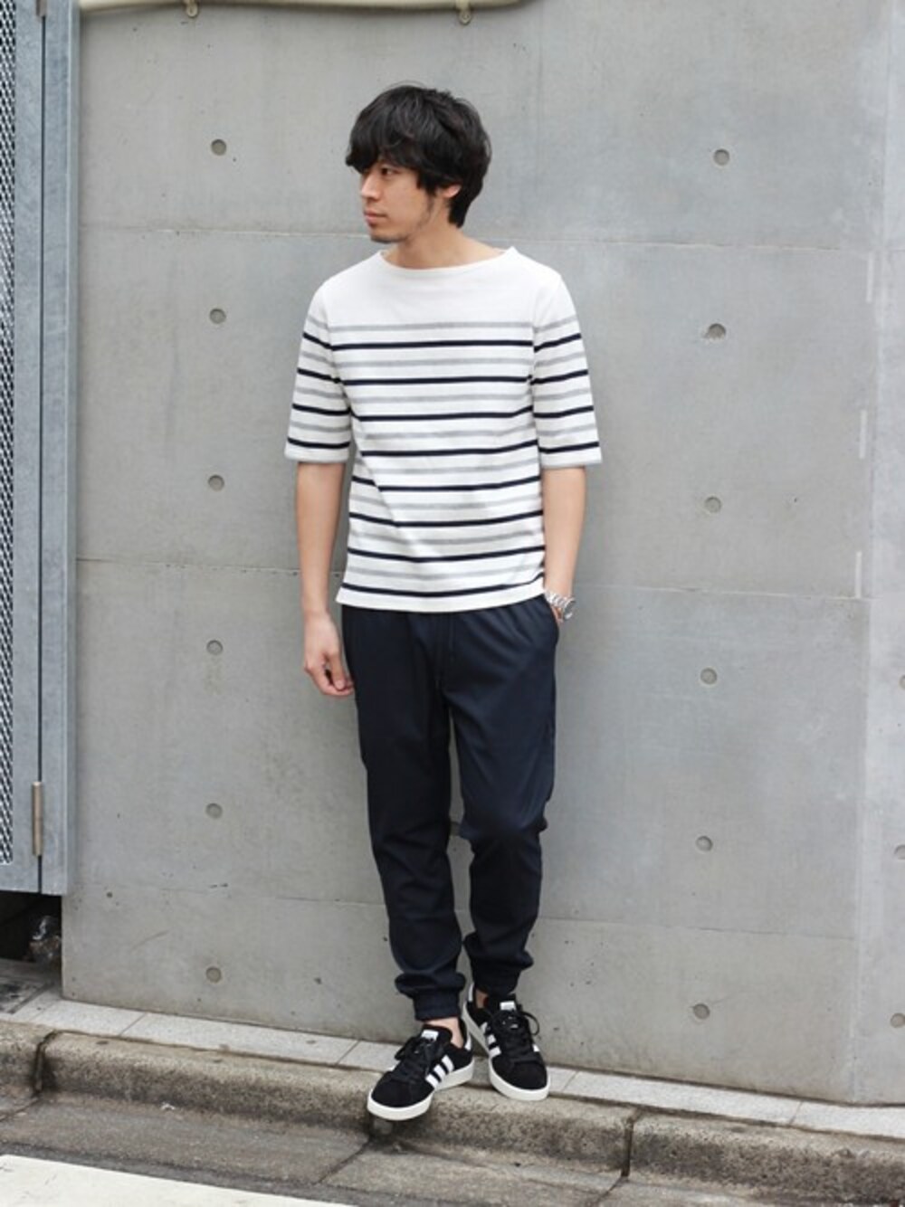 JS定番シリーズから5分袖のマリンボーダーが登場! 半袖とは違い5分袖は子供っぽくならない大人の雰囲気でスタイリング出来る一着となっております。