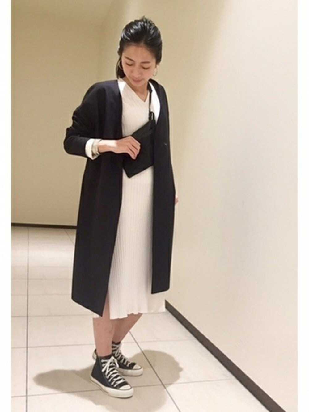 少しスポーティにスタイリングしてみました。程良い厚みとハリ感がありシルエットが非常にきれいな為、スニーカーで外すのもオススメです!