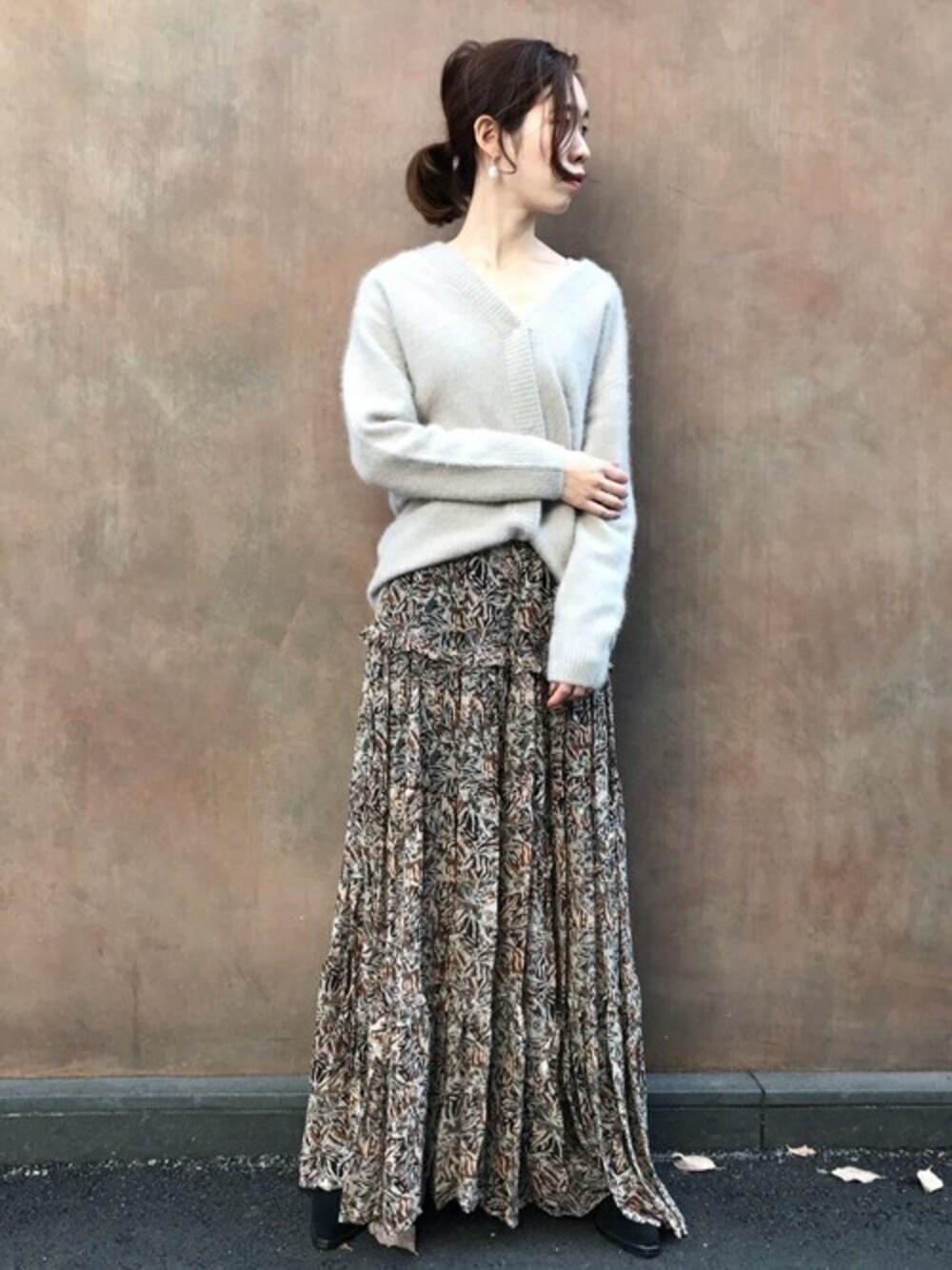 ETSUKOのカーディガン/ボレロ「ラクーンカシミヤVネックカーディガン」を使ったコーディネート