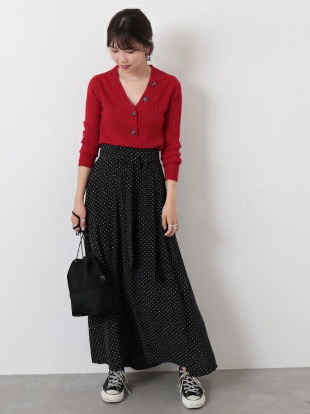 andoのスカート「ドットプリントフロントリボンスカート◆」を使ったコーディネート