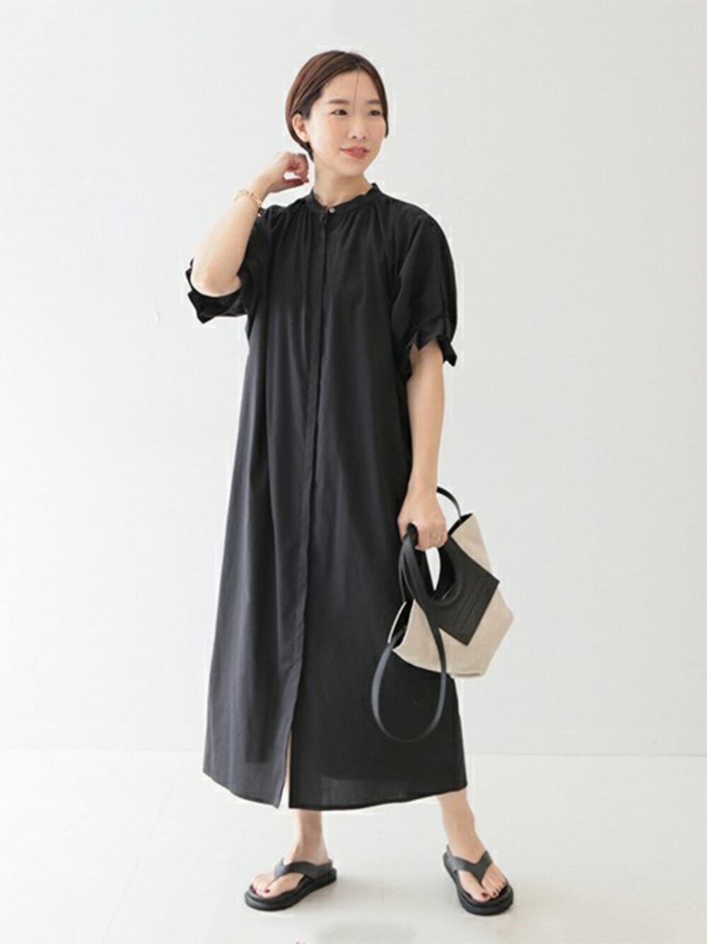 yasumotoのワンピース「タックスリーブワンピース」を使ったコーディネート