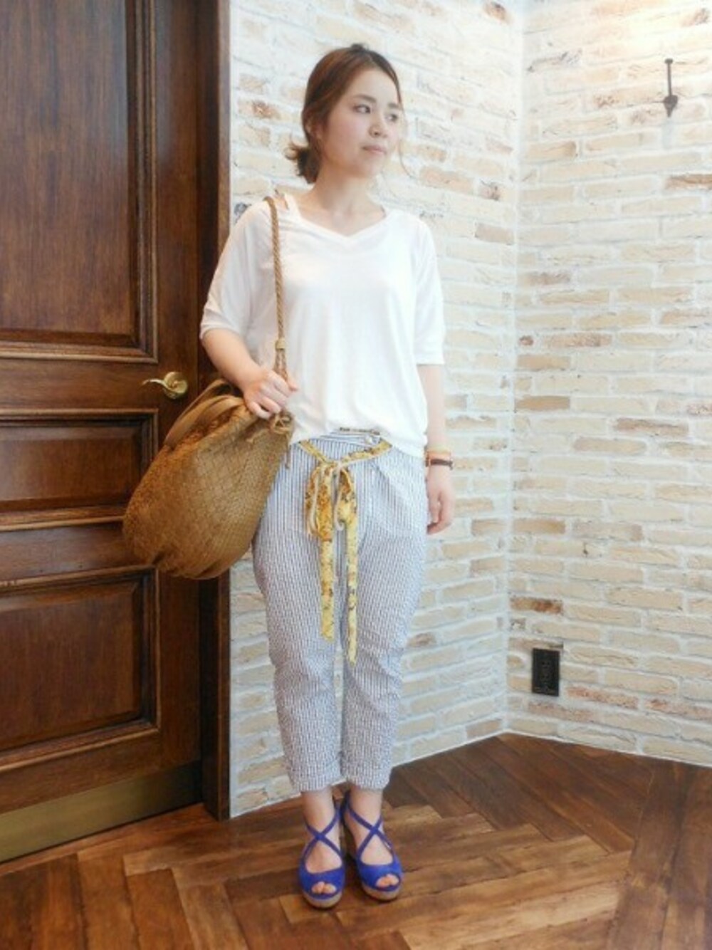 去年から人気のロープ付パンツが今年も入荷しました! シンプルなカットソーで大人っぽくまとめてみました。