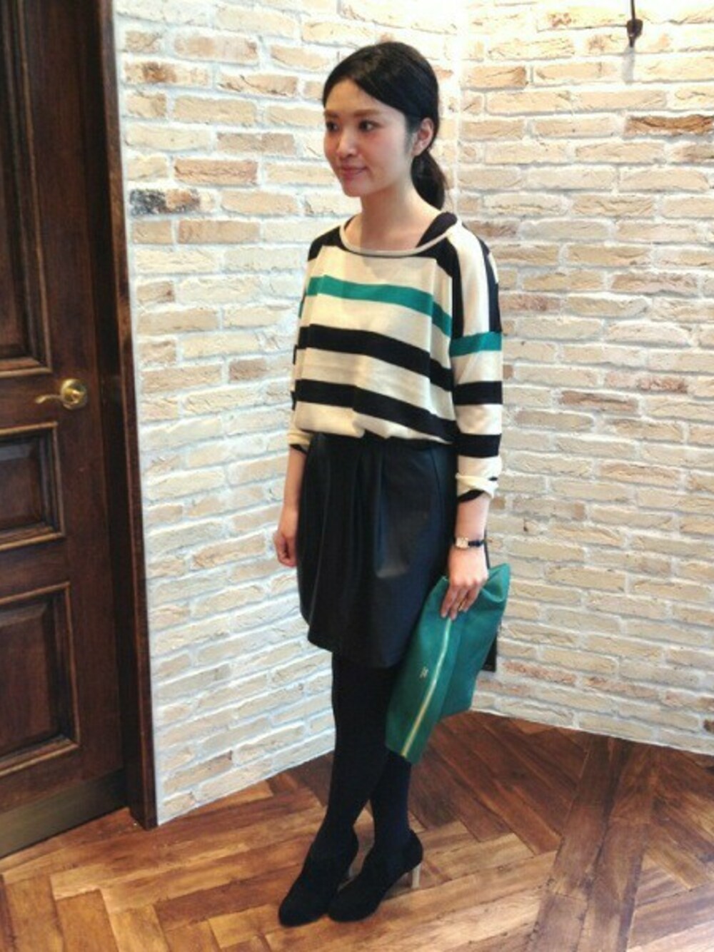コーディネートに取り入れやすいボーダーアイテムや、タックスカートを合わせた 一見シンプルなコーディネートですが、今回は色・素材で少しトレンド感を出してみました。
