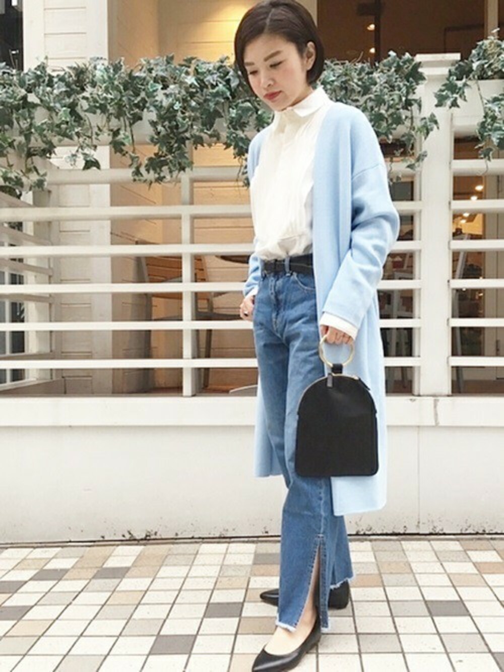 春色のカーディガン。柔らかな素材で着心地も良いです。厚みがあまり無いので、今でしたらアウターの中にも着込んで頂けます。