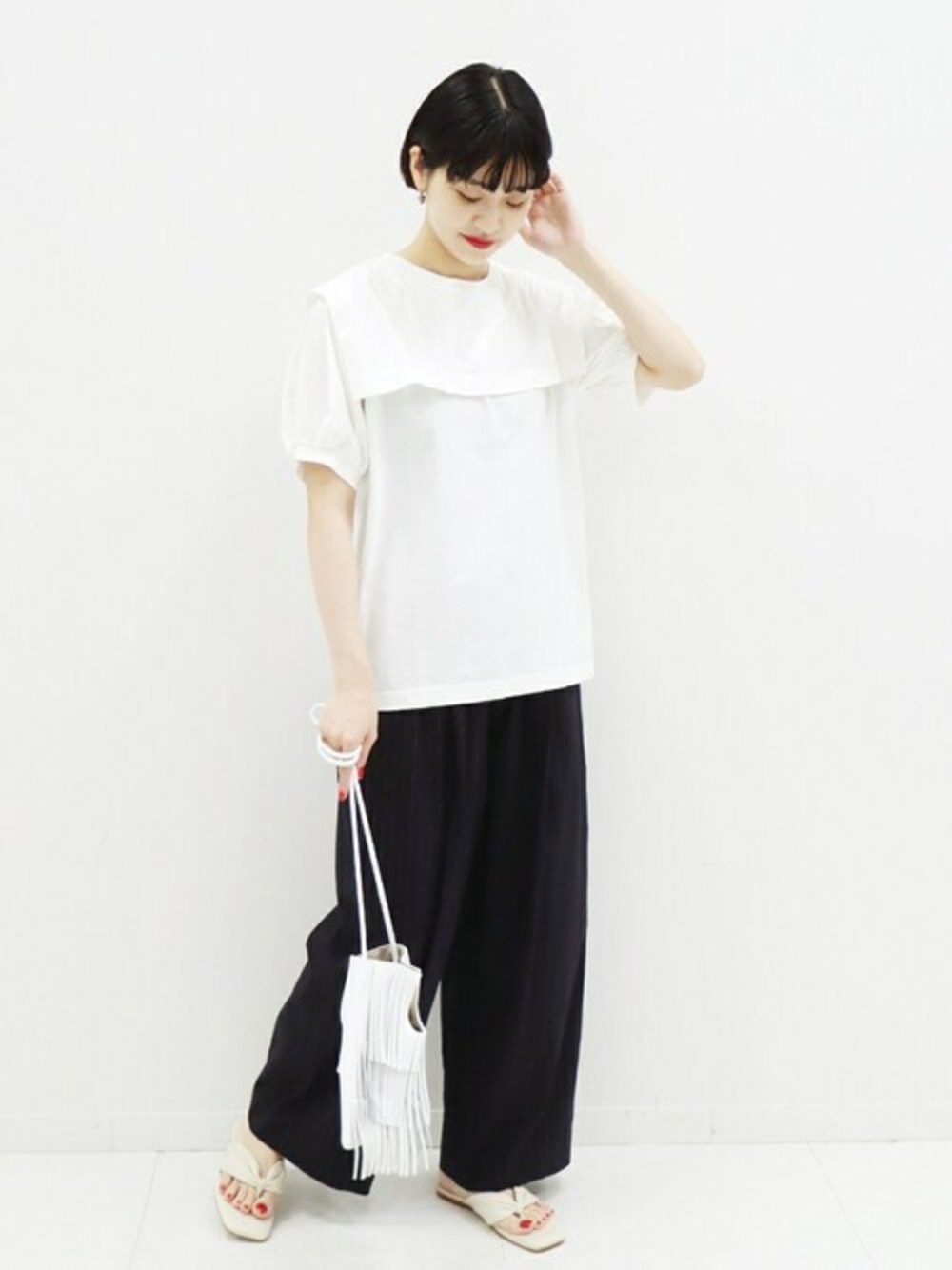 ■サイロプレミアムスクエアカラープルオーバー リラックス素材でトレンド感抜群のスクエア衿のカットソー。 ブラウスのようなデザインですがカットソー素材なので着心地もラクチン。 洗いざらしたようなカジュアルな素材感ながら、薄手なので真夏でも涼しく着られます。 袖もパフ袖だったり細部のバランスにもこだわったデザイン。さっと着るだけで今年顔になる便利なトップスです。 同シリーズ ・サイロプレミアムビックカラースキッパープルオーバー(品番:21070400911020) サイズ感:普段Мサイズ着用で、程よく余裕があるサイズ感です。 素材感:インナーにも使える素材感で、少し薄めです。 着心地:柔らかい素材感なので、着心地抜群です。