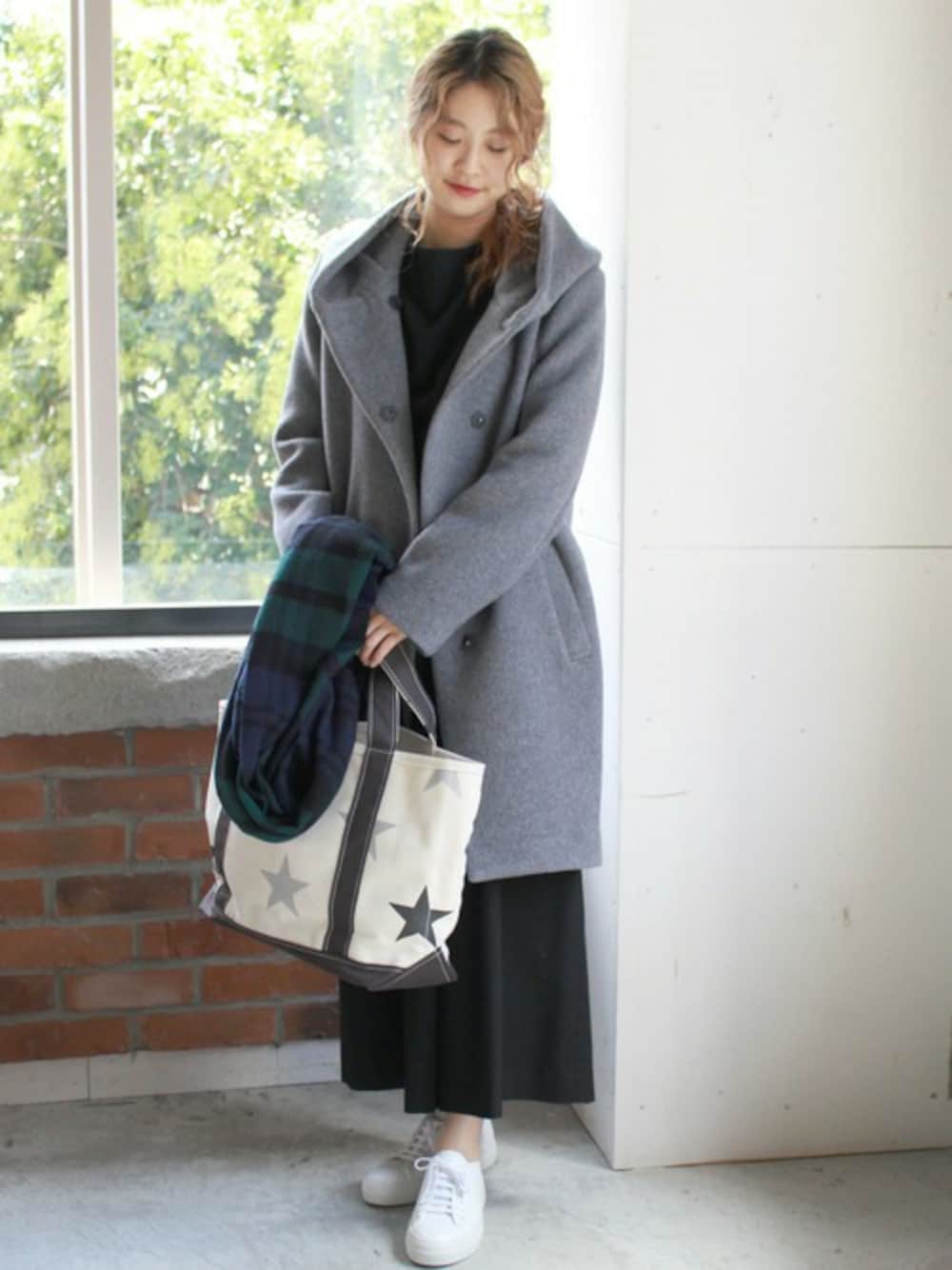 asanoのその他アウター「ダブルモッサー2Wayフードロングコート#」を使ったコーディネート