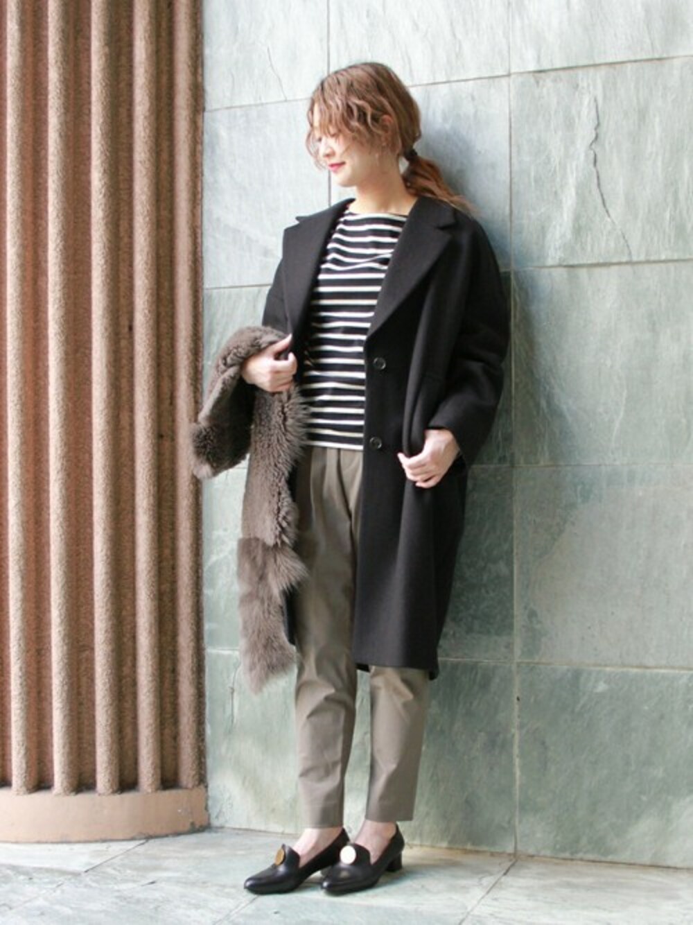 ゆったりとしたシルエットが今年らしいビッグシルエットのチェスターコート。 体をすっぽりと包みこんでくれるオーバーサイズのアウターは、 女性らしいアイテムとあわせて大人に着こなしたいアイテムです。 パンツスタイルはもちろん、ワンピースやスカートとも合わせやすいデザインです。