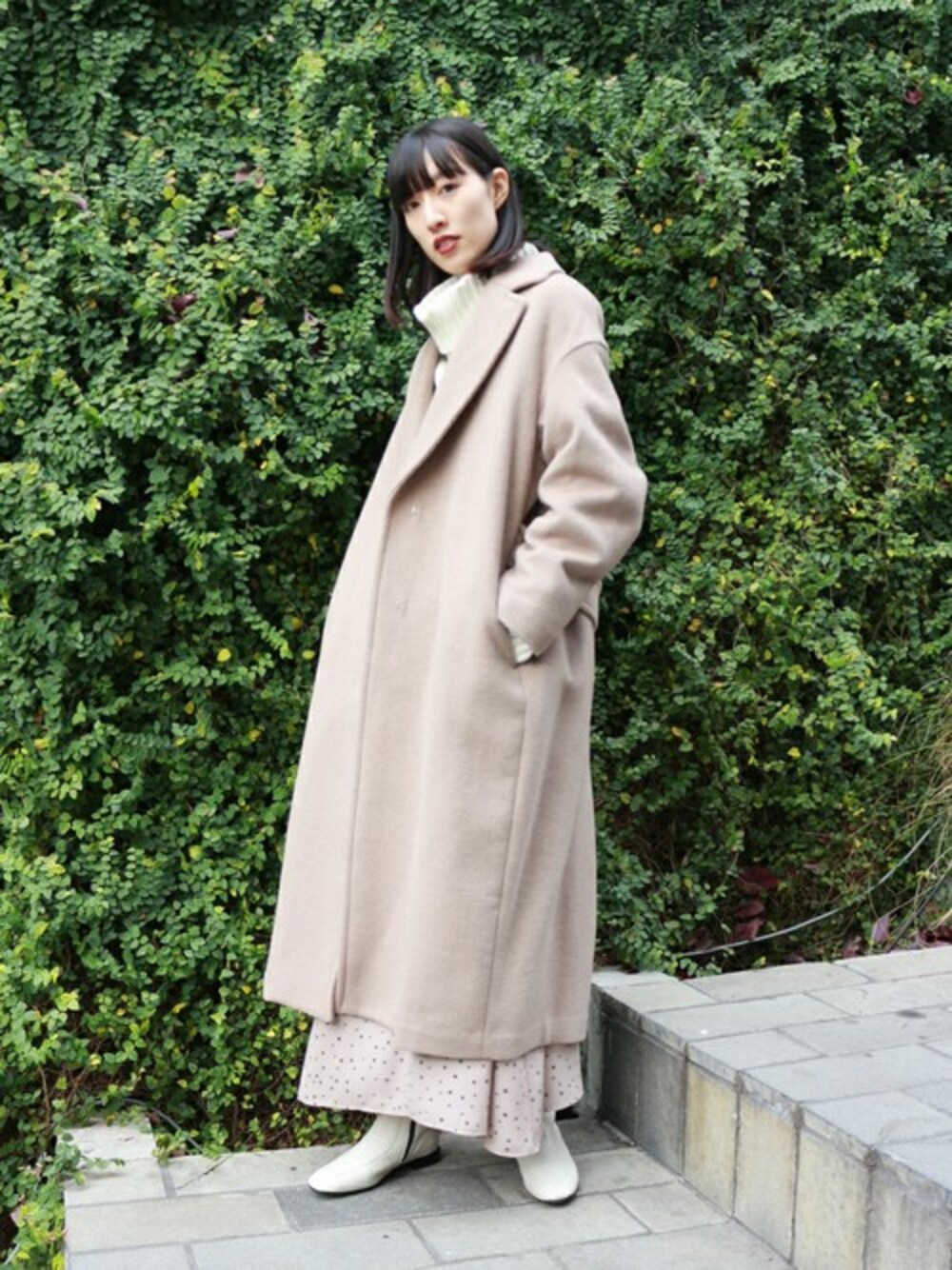 柔らかく毛足の素材を使用しさらっと羽織るだけで様になるコート。 ビックシルエットと広めにとった裾幅がこなれ感を演出してくれます。 落ち感があるので小柄な方でもバランス良く着て頂けます。