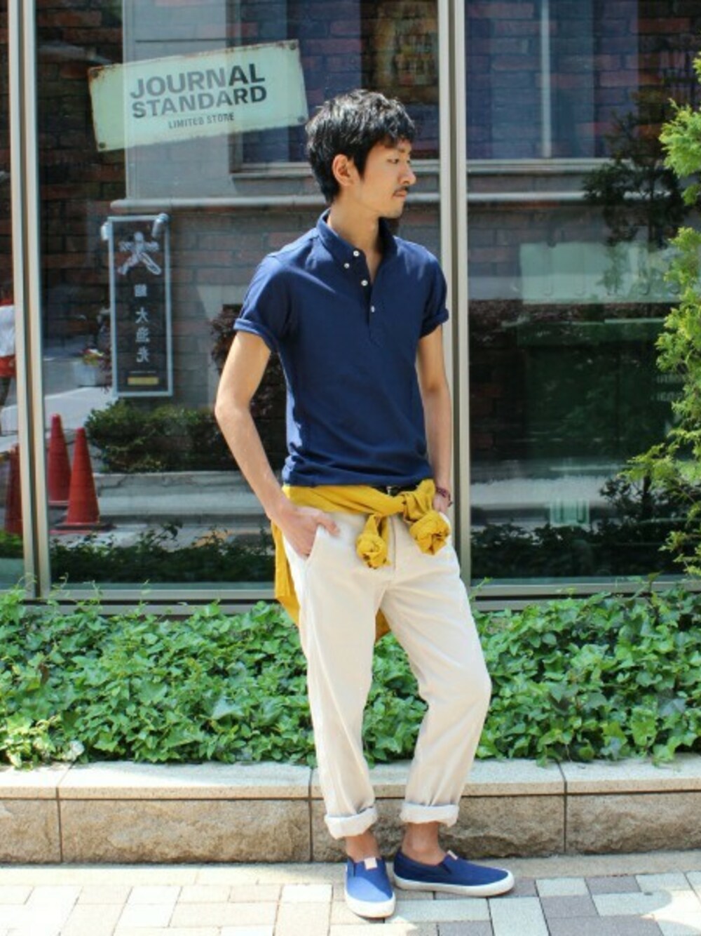 Sasaのポロシャツ「☆ツイルカノコボタンダウンポロシャツ#」を使ったコーディネート