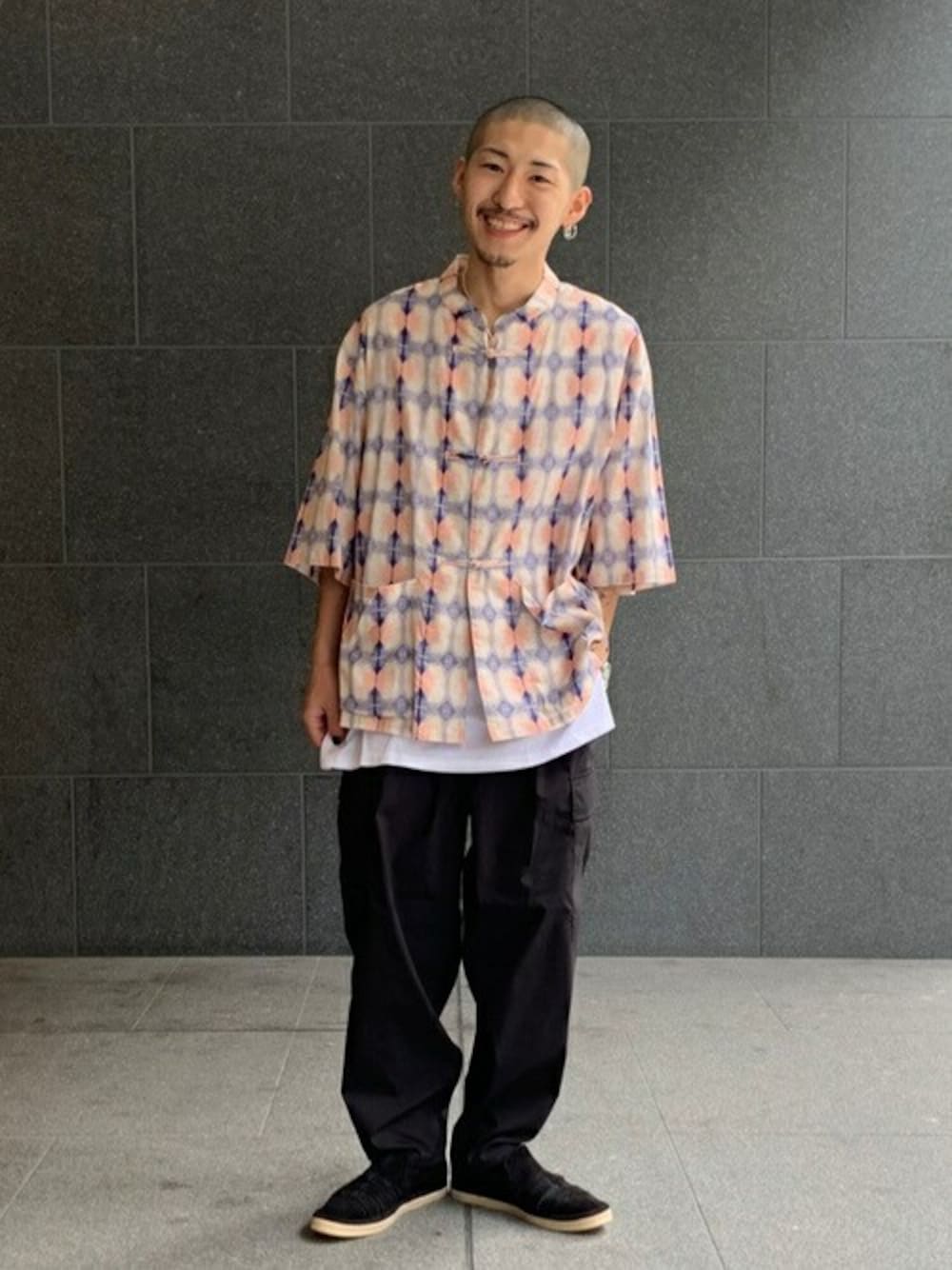身長 170cm 体重 59kg shirt 普段着用サイズ M 着用サイズL 着用感 ゆったり 素材感 トロッとした感じ 着心地 気持ちいい tee 普段着用サイズ M 着用サイズM 着用感 ゆったり pants 普段着用サイズ M 着用サイズM 着用感ゆったり 素材感涼しい コーディネートポイント 夏でもカーゴパンツが履きたい! 夏でも楽に着こなせるイージーカーゴ+チャイナシャツという王道の組み合わせ。 野暮ったくなりすぎないよう、足元を上品にしています。 チャイナシャツはECでお買い求め頂けませんが、ぜひ店舗に見に来てください!!