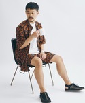 ジャーナルスタンダード メンズ(JOURNAL STANDARD 本社)のシャツ/ブラウス「【シャツ+ショーツ+巾着袋の3点セット】ホームウェア SUMMER セットアップ/部屋着/ワンマイル/オーバーサイズ/バンドカラー半袖シャツ/バギーショーツ/[10色展開/総柄/ウォールペイント/無地][ユニセックス対応]」を使ったコーディネート