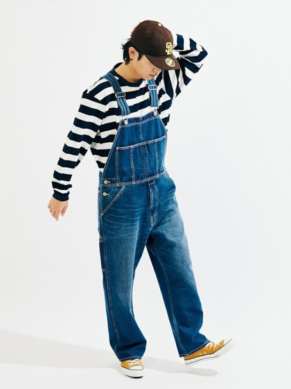 デニム トレイル オーバーオール 身長:177cm 体重:67kg 普段サイズ:L 着用サイズ:L 着用感:自分好みのサイズ感に調節可能 素材感:ナチュラルなデニムの風合い 着心地:ちょうど良いゆるさが着やすくシルエットも◎ 一言コメント:拘りの詰まったワーク感あるオーバーオール。スタイリング次第で長いシーズン着回しが利き、かつ経年変化を楽しみながら長く使える重宝できるアイテムです。