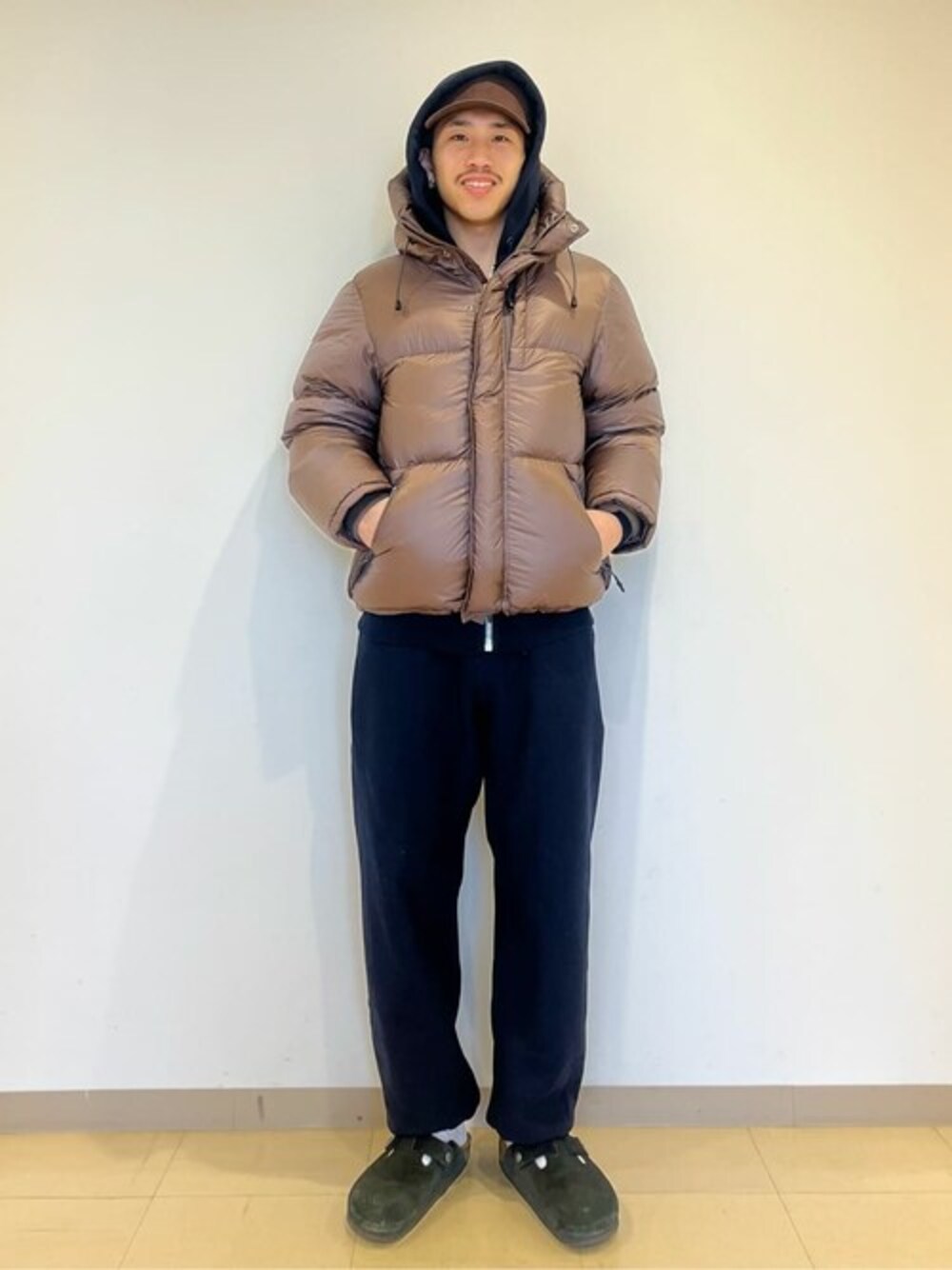 身長170cm 体重63kg アウター 普段サイズS〜M 着用サイズS 着用感:ややゆったりめ 素材感:軽くて着やすい 一言:800フルパワーで他のダウンに比べ暖かいです。 インナー 普段サイズS〜M 着用サイズM 着用感:ゆったりめ 素材感:裏起毛で暖かい 一言:シンプルなので使い勝手も良く、秋や春は一枚で着ることができます。 パンツ 普段サイズS〜M 着用サイズM 着用感:ややスッキリめ 素材感:裏起毛で暖かい 一言:すっきりめに履けるので、スタイリッシュな合わせに組み込んでも面白いと思います。