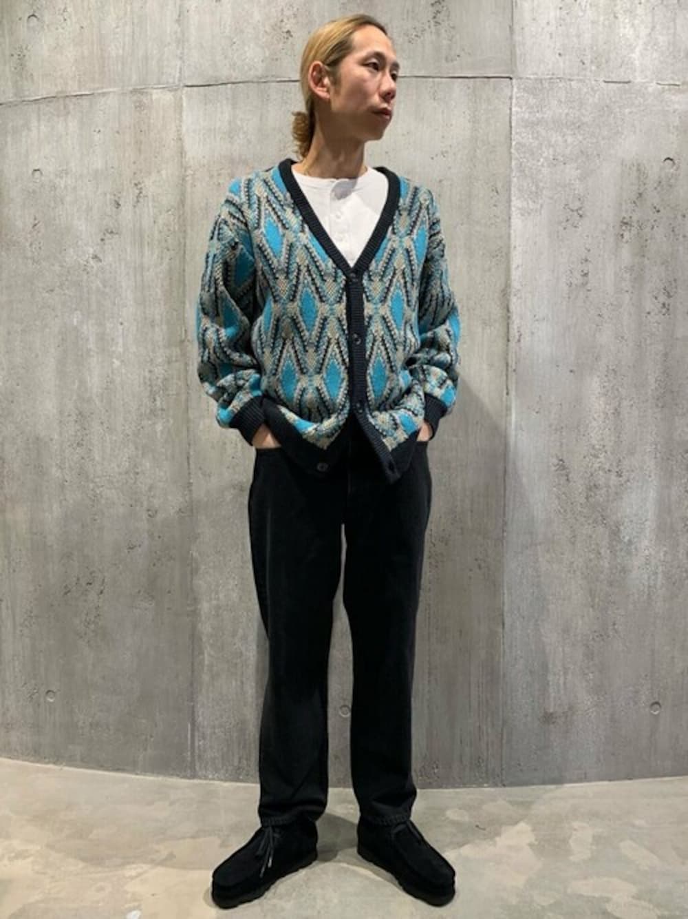 身長:175 体重:58kg 体型:痩せ型 普段着用サイズ:M ネイティブパターン ジャカードカーディガン 普段サイズ:M 着用サイズ:M 素材感:厚みのあるコットンアクリル 着用感:幅があり、ゆるく羽織れます 【Healthknit×JOURNAL STANDARD】別注 ヘンリーネック L/S Tシャツ 普段サイズ:M 着用サイズ:M 素材感:しっかりした厚手コットン素材 着用感:幅がありゆるめ、定番アイテム デニム ストレート LOT200 普段サイズ:M 着用サイズ:M 素材感:柔らかめデニム生地 着用感:太すぎない綺麗なストレートシルエット 【Clarks / クラークス】Wallabee BT GTX 普段サイズ: us9 着用サイズ:070 着用感:ゴアテックスで全天候型、どんなスタイルにも合わせられます。 一言コメント カーディガンに白T、デニムの王道コーデを柄とシルエットにこだわり、ヘンリーネックで変化をつけました。