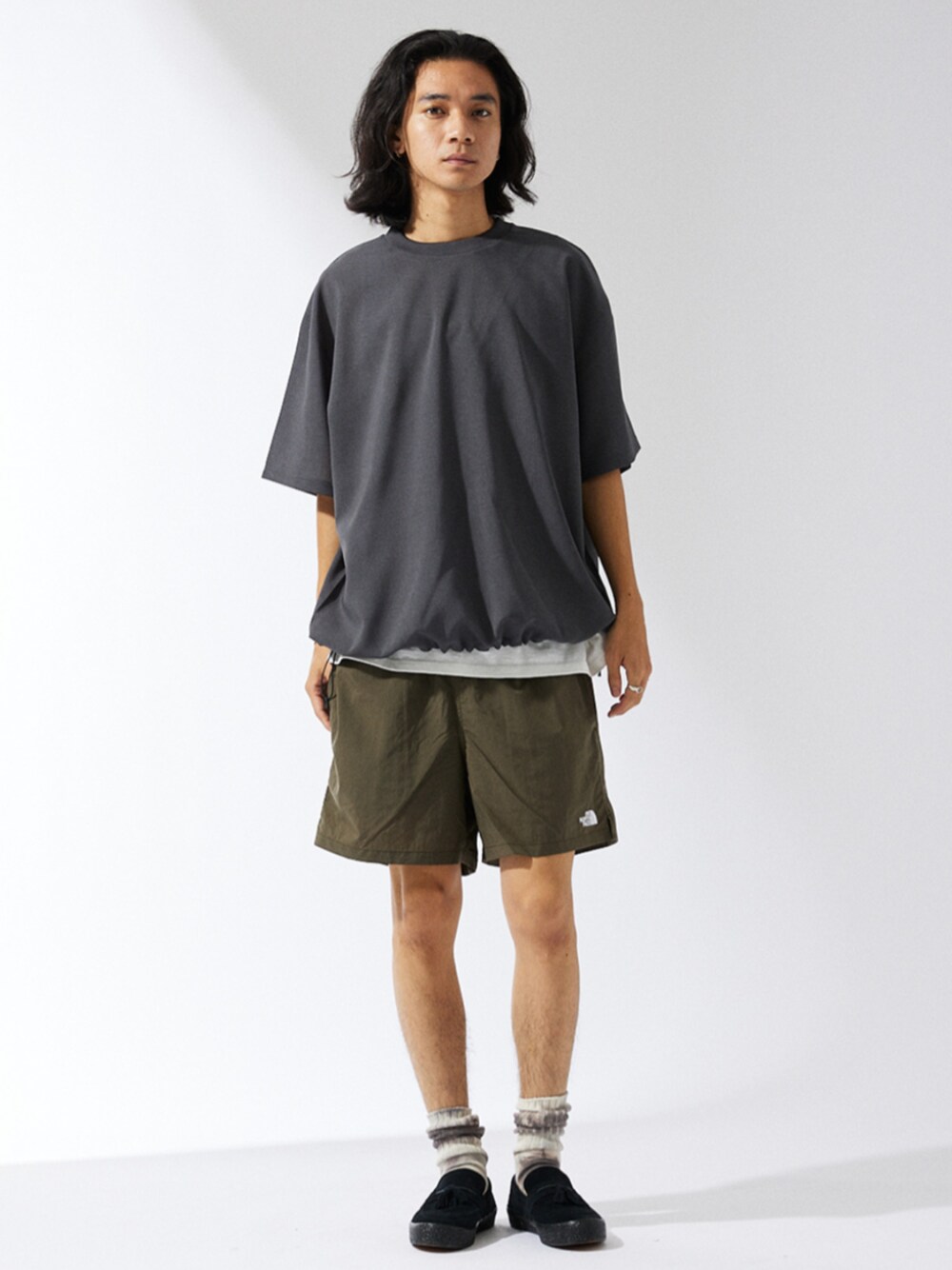 身長:181cm 体型:痩せ型 普段着用サイズ:L 軽量で乾きやすいナイロン素材を使用した、ノースフェイスのショートパンツ。 サンダルと合わせるとラフ過ぎるので、スニーカーにソックスで脚の露出を控えめにすると◎ ウエストはゴムなので過度な締め付けもなく、暑い夏でもノンストレスで過ごせます。 《Tシャツ》 着用サイズ:M 着用サイズ感:程よいルーズさで、着用しやすかったです。 《ショーツ》 着用サイズ:L 着用サイズ感:とても軽く、ゆったりと着用できました。