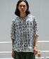 身長:181cm 体型:痩せ型 普段着用サイズ:L ポリエステルシアーサテンを使用した幾何学模様のシャツ。 総柄のシャツは存在感があるため、モノトーンで纏める落ち着きのあるスタイリングにしました。 《シャツ》 着用サイズ:L 着用サイズ感:軽くて、ラフに羽織ることができました。 《パンツ》 着用サイズ:M 着用サイズ感:程よい落ち感のある、ゆったりとしたサイズ感。