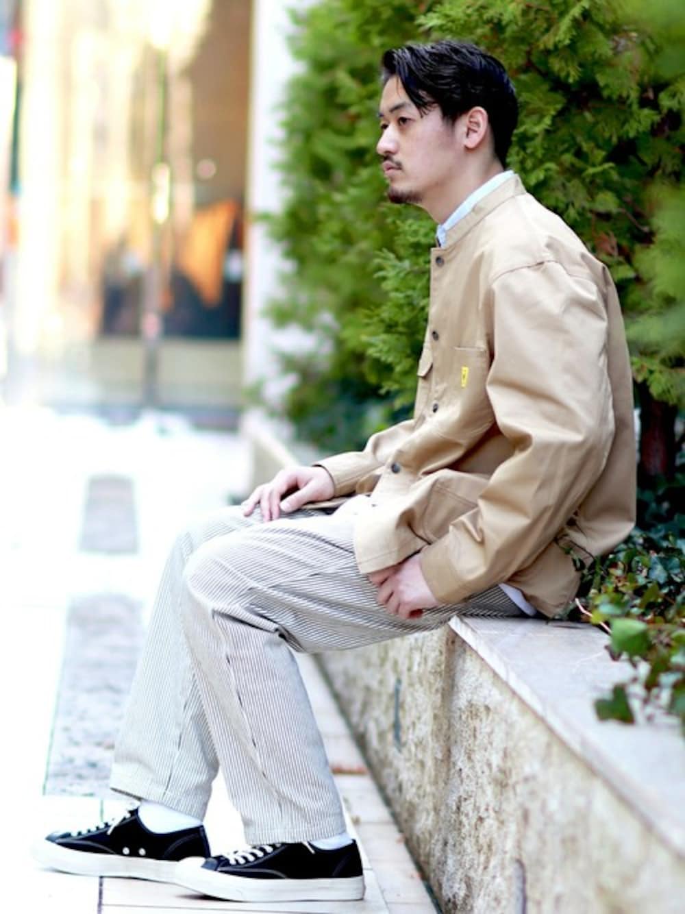 【Bobson/ボブソン】デニム ヒッコリー ペインターイージーパンツ 身長:177㎝ 体重:70kg 普段サイズ: L 着用サイズ: L 着用感:腰周りにゆとりがあり、裾に向かってテーパード 素材感:適度に厚手 着心地:軽い 一言コメント:いろんなアイテムに合わせやすいのでヘビロテしたいパンツです!