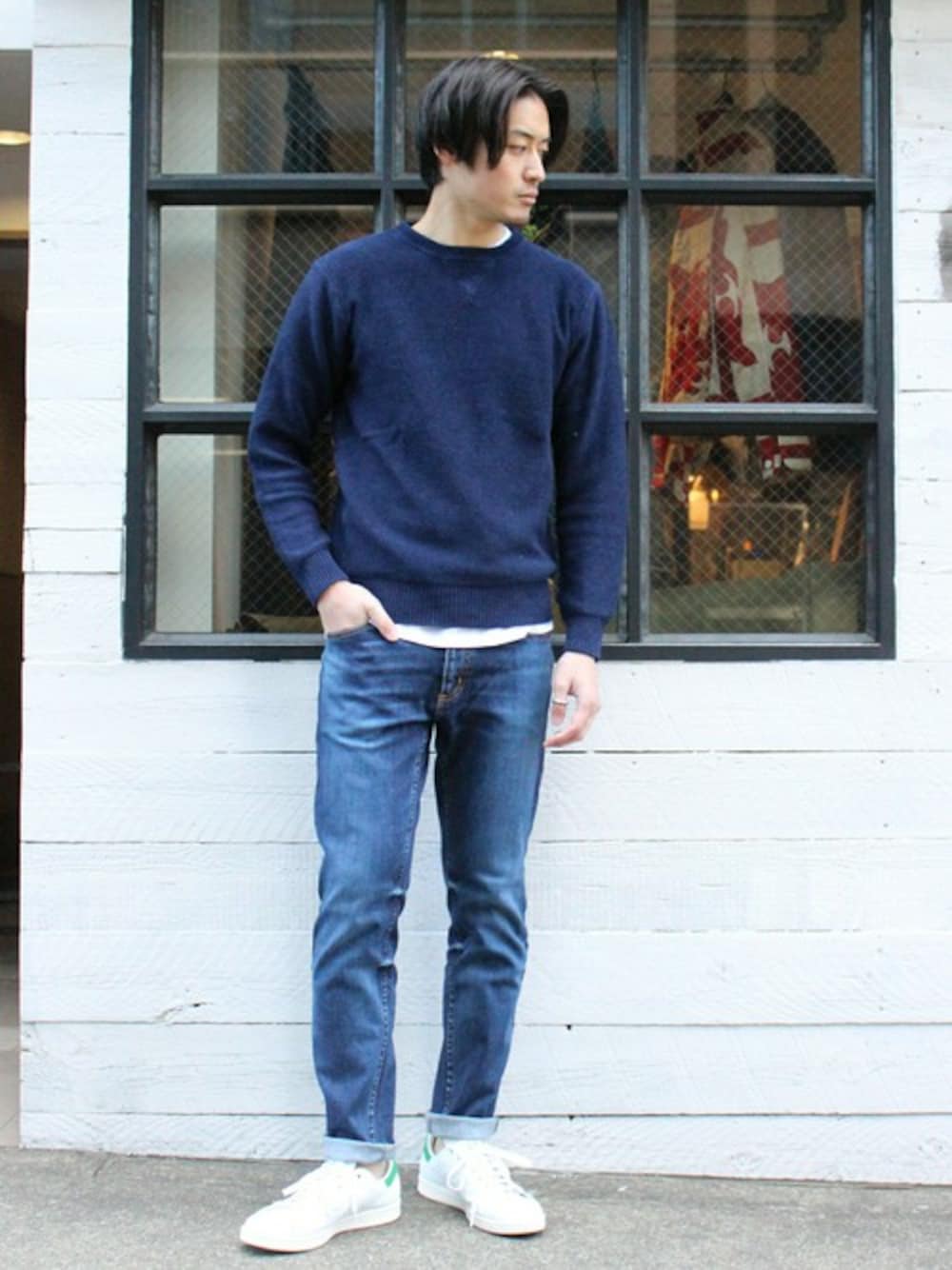 松下 和貴のニット/セーター「インディゴコットンガゼットクルーネックニット#」を使ったコーディネート