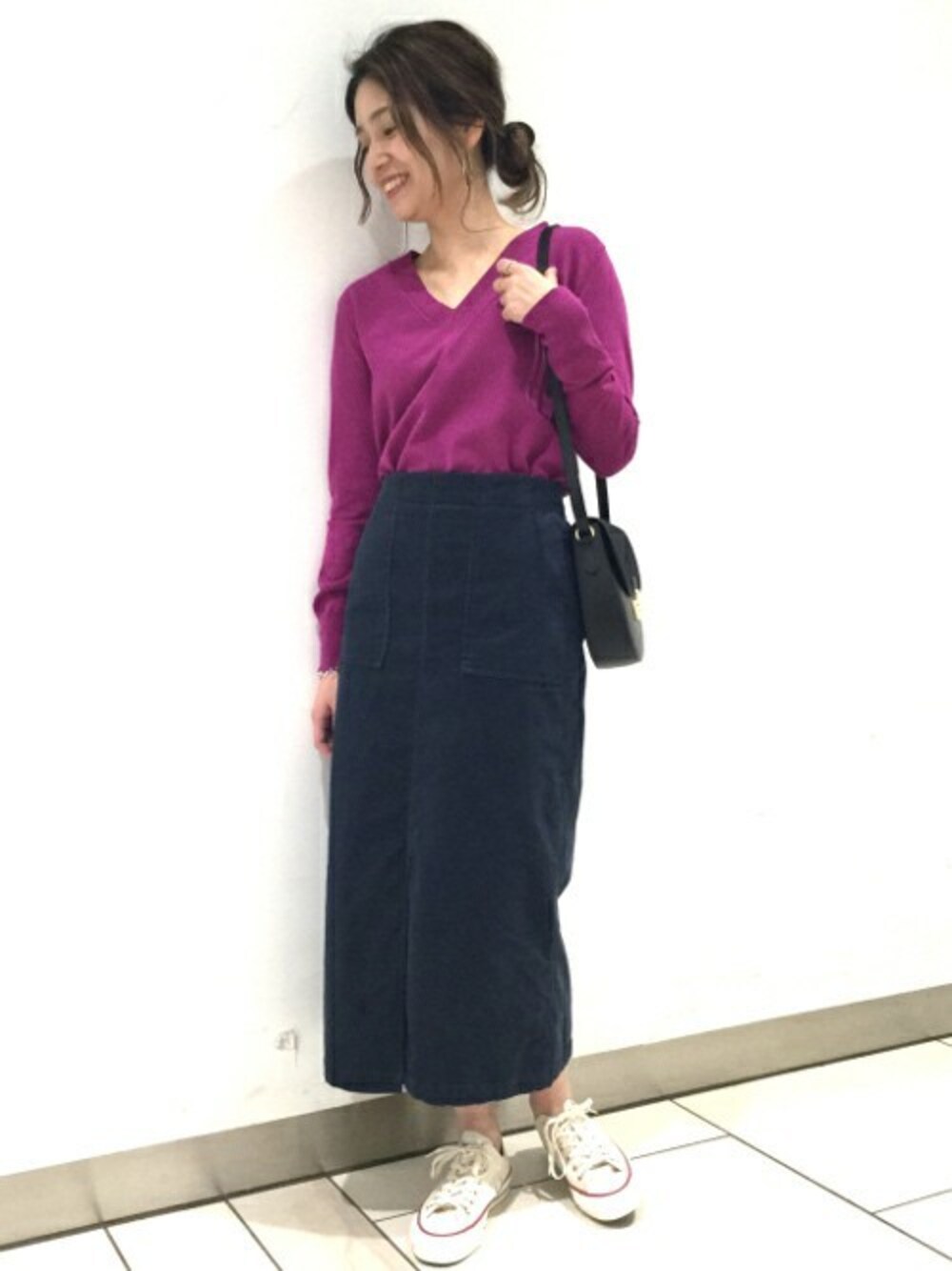 細めなコーデュロイなので、時期も長く使って頂けます! タイトスカートでも伸縮性があるので、履き心地抜群です。
