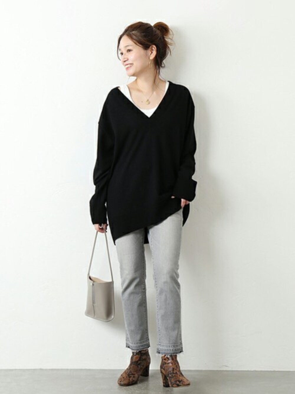 ondaのニット/セーター「ディープVネックプルオーバー◆」を使ったコーディネート